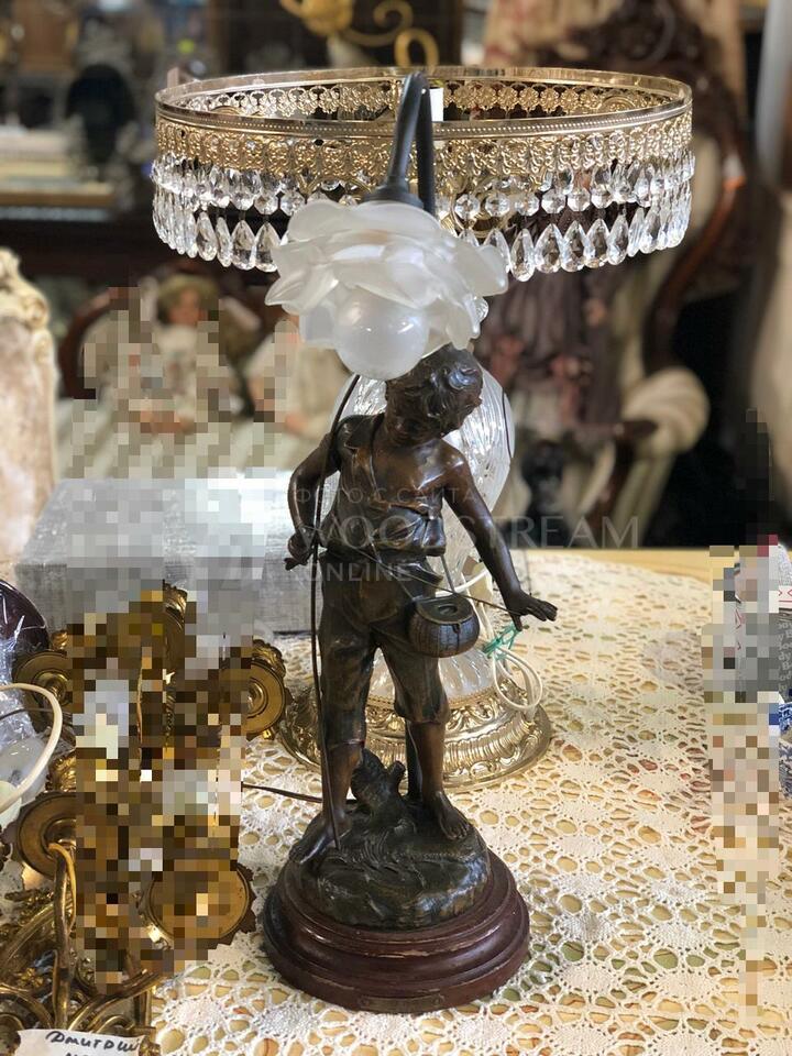 Лампа настольная старинная со скульптурой Moreau / Арт-И9148