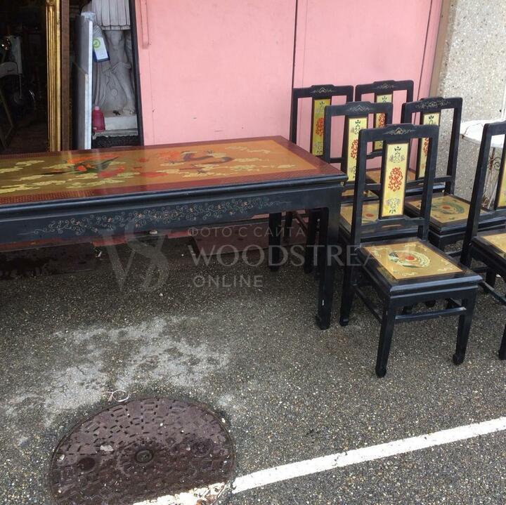 Комплект обеденный: Стол и 6 стульев в стиле шинуазри / Арт-И9732