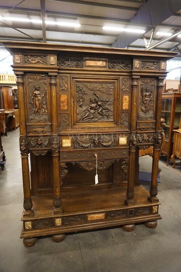 Старинный шкаф с художественной резьбой. Требуется реставрация