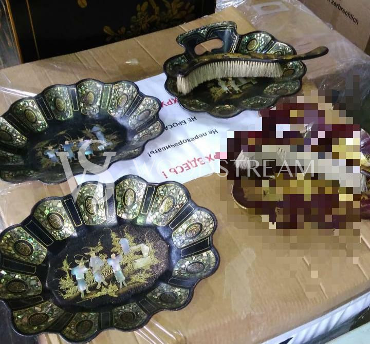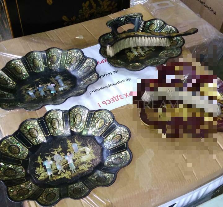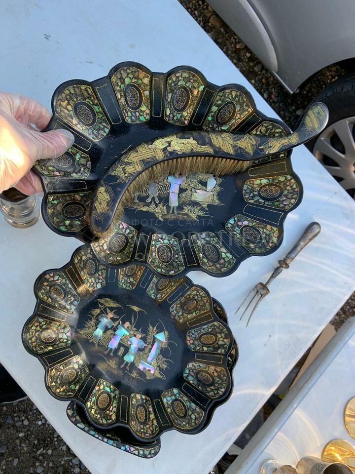 Совок/блюдо 2 штуки и щетка в стиле шинуазри / Арт-И11707