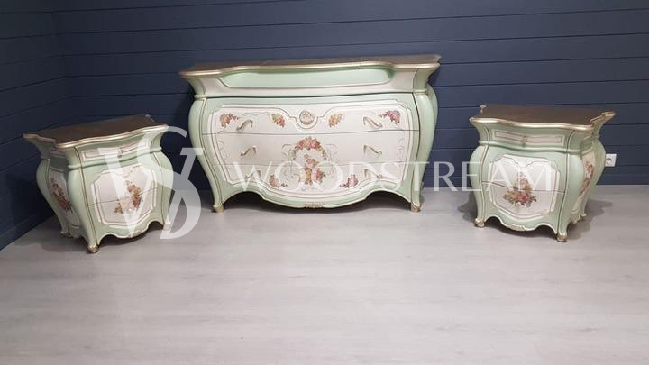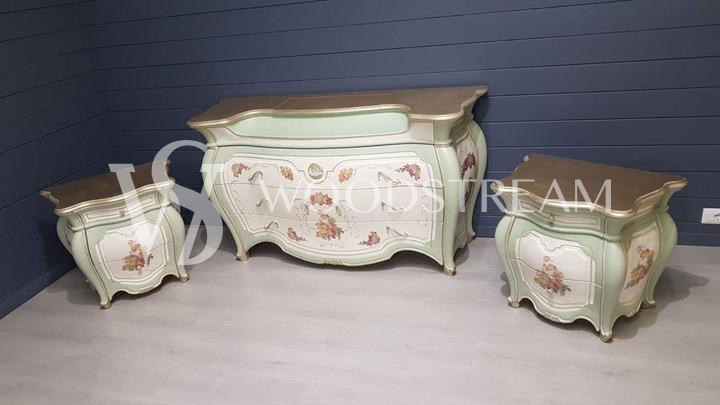 Комплект: комод с зеркалом и тумба 2 штуки в стиле венецианского барокко / Арт-И14371