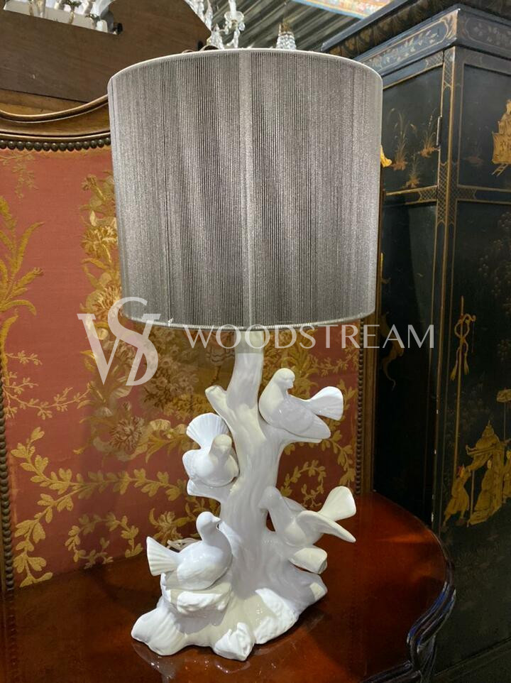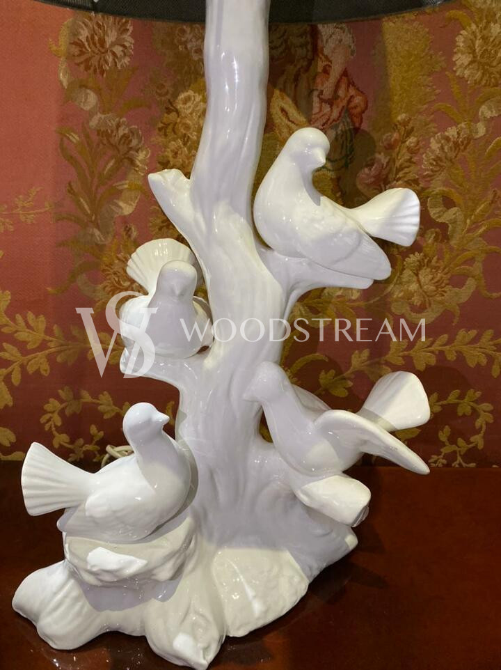 Лампа настольная винтажная с голубями / Арт-И14600