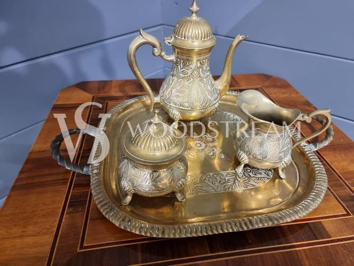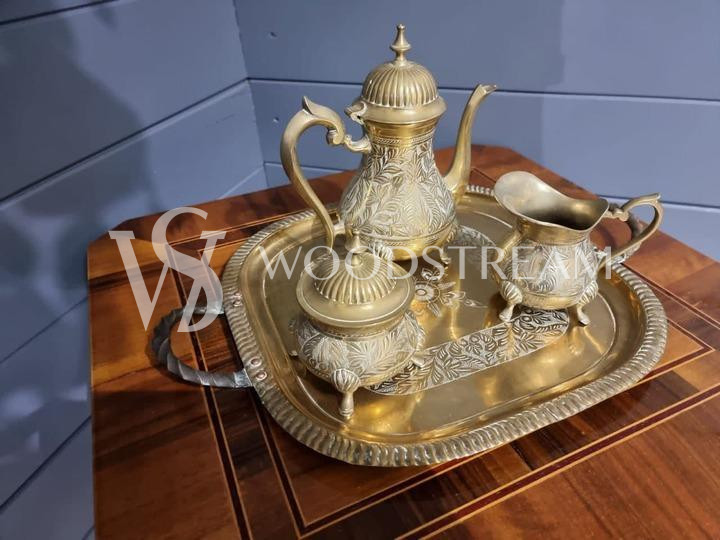 Сервиз кофейный на подносе: Чайник Молочник и Сахарница / Арт-И15004