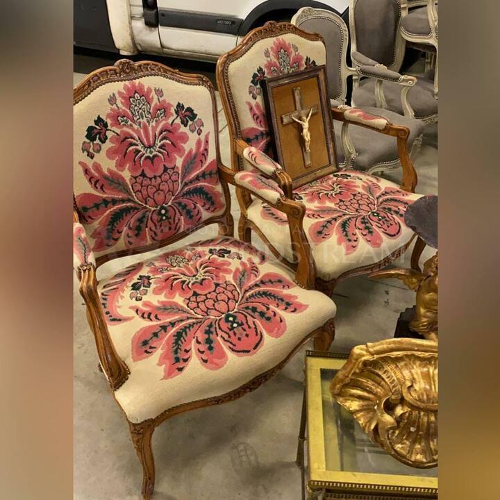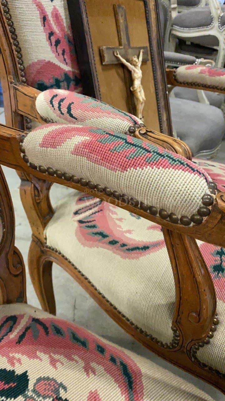 Кресло 2 штуки в стиле Людовика XV гобеленовое / Арт-И15349