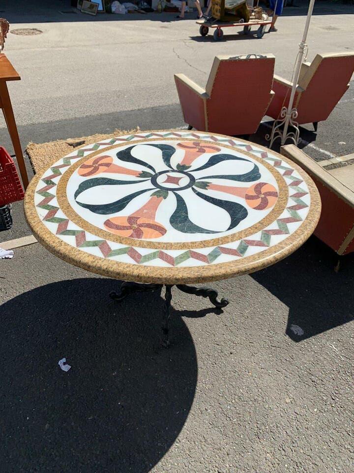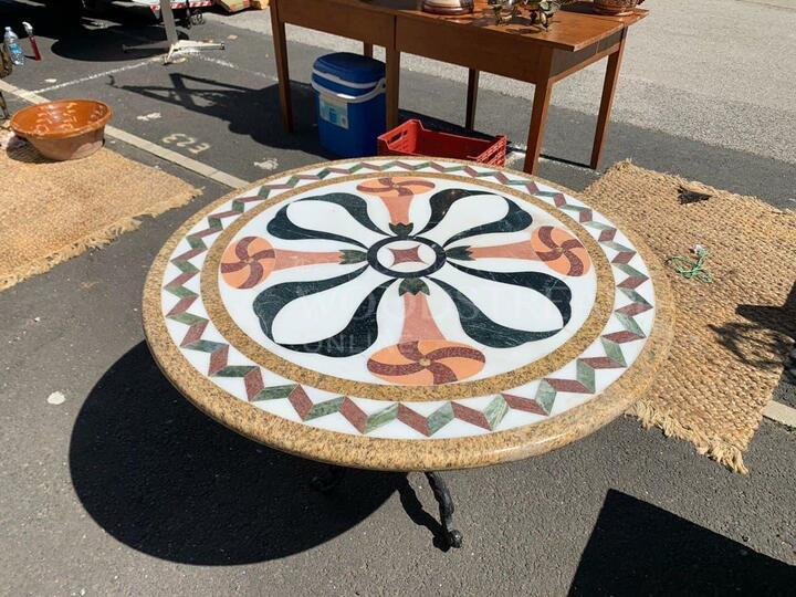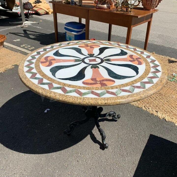 Стол обеденный винтажный с мраморной столешницей / Арт-И15381