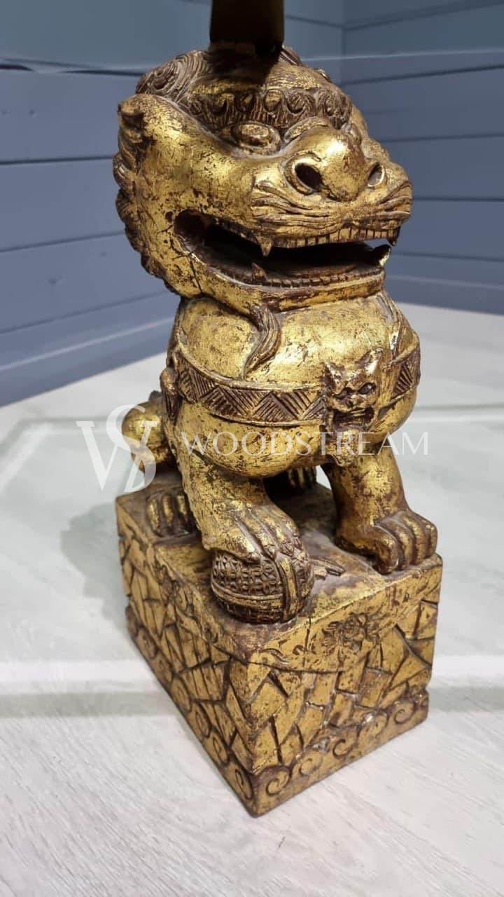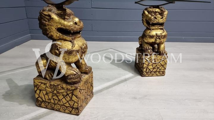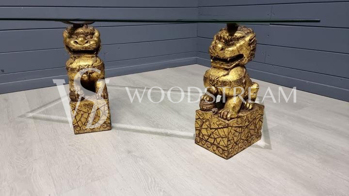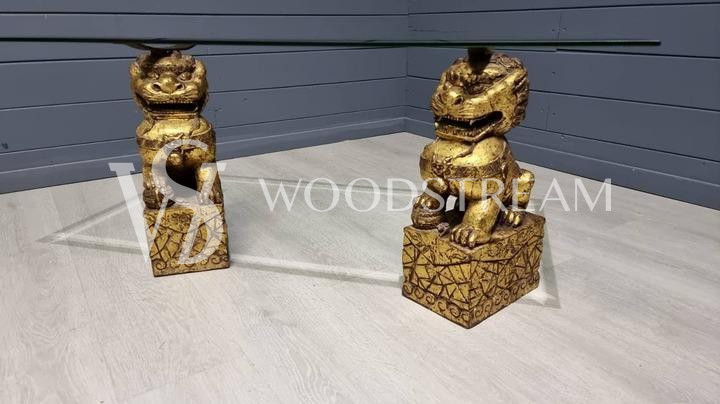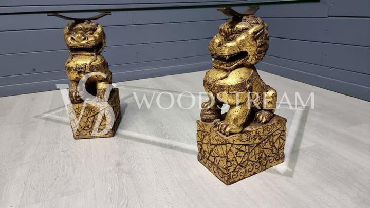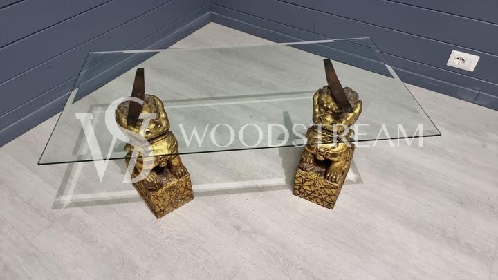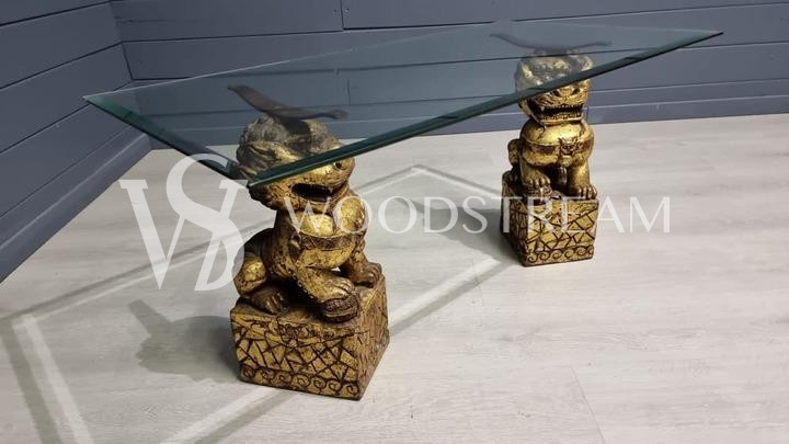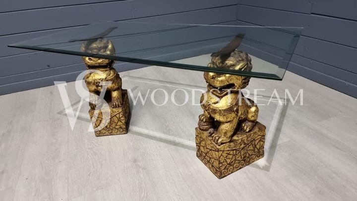 Стол со стеклянной столешницей и драконами/собаки Фу / Арт-И15599