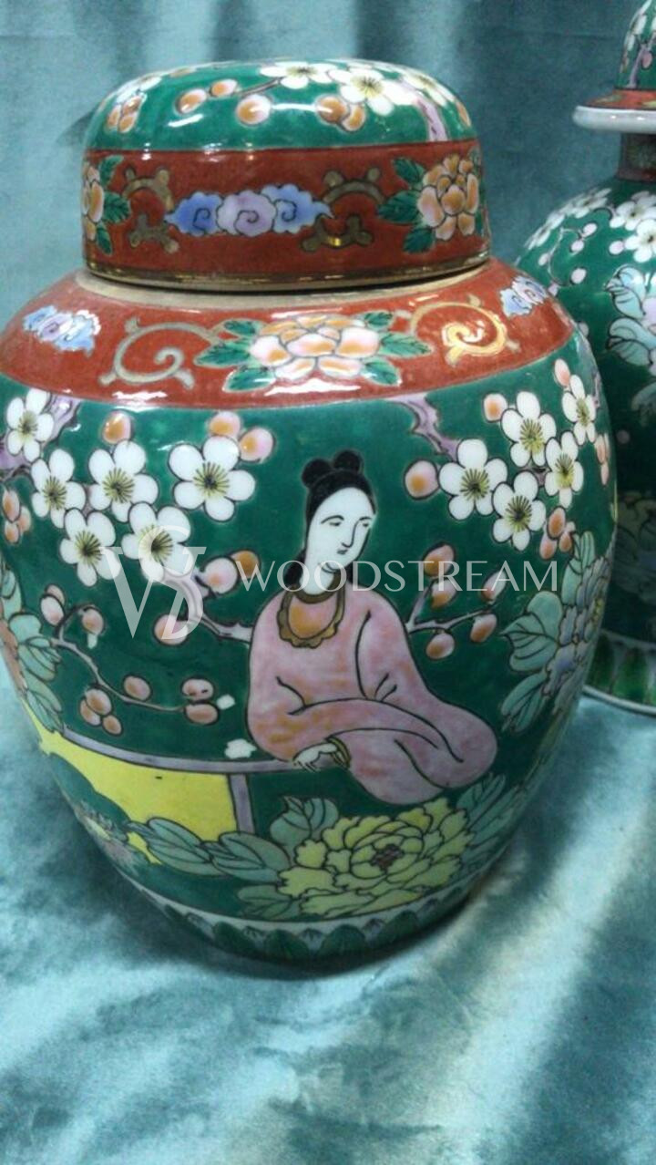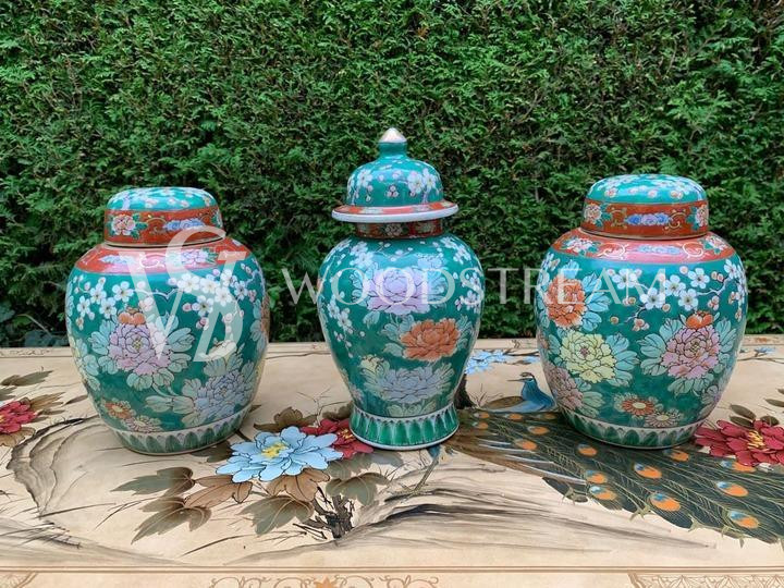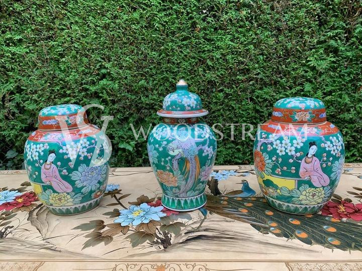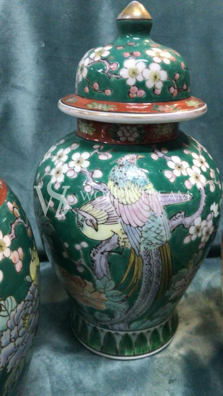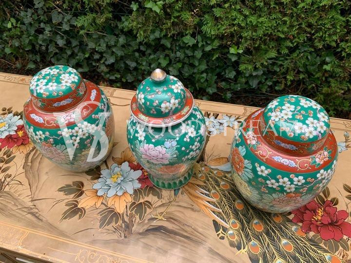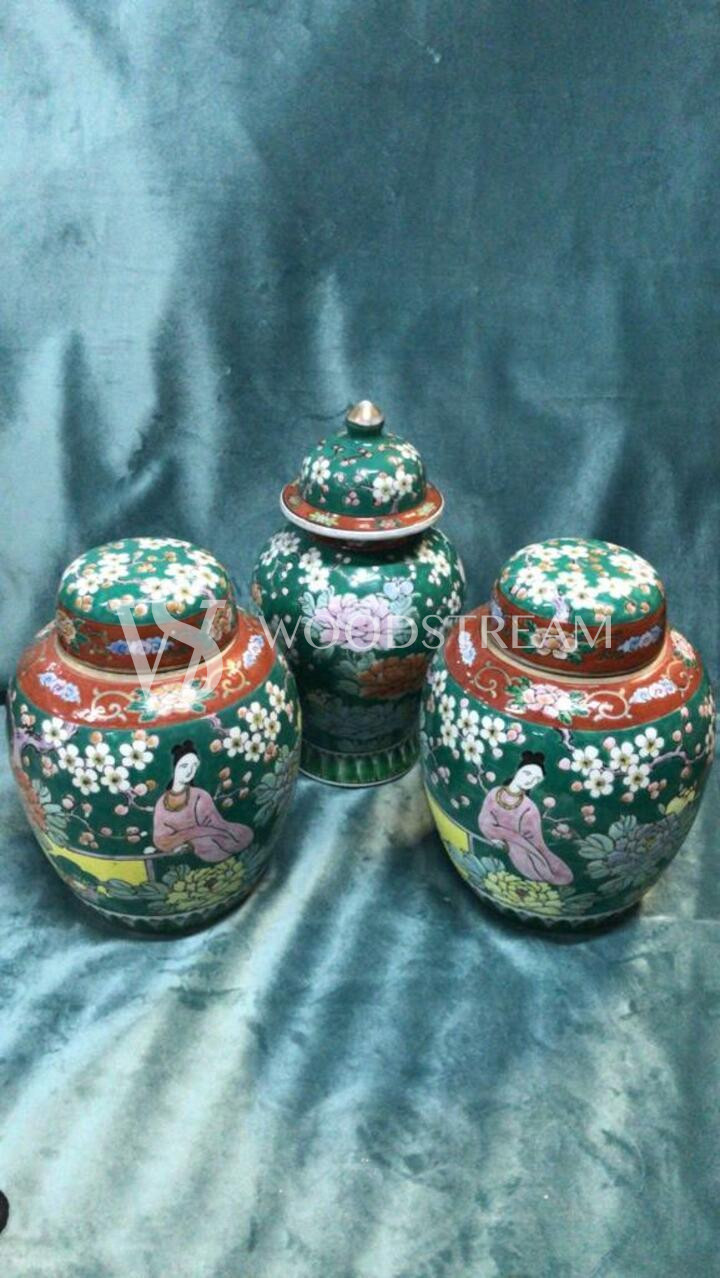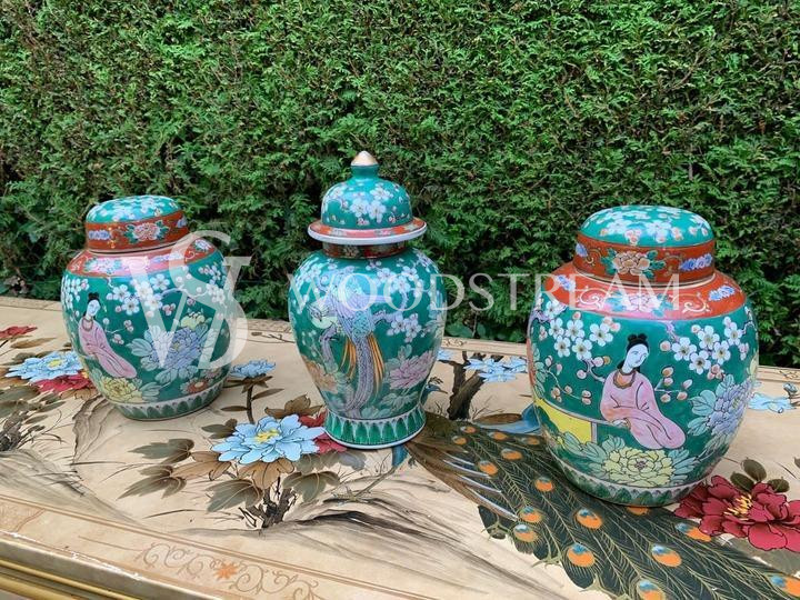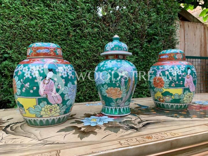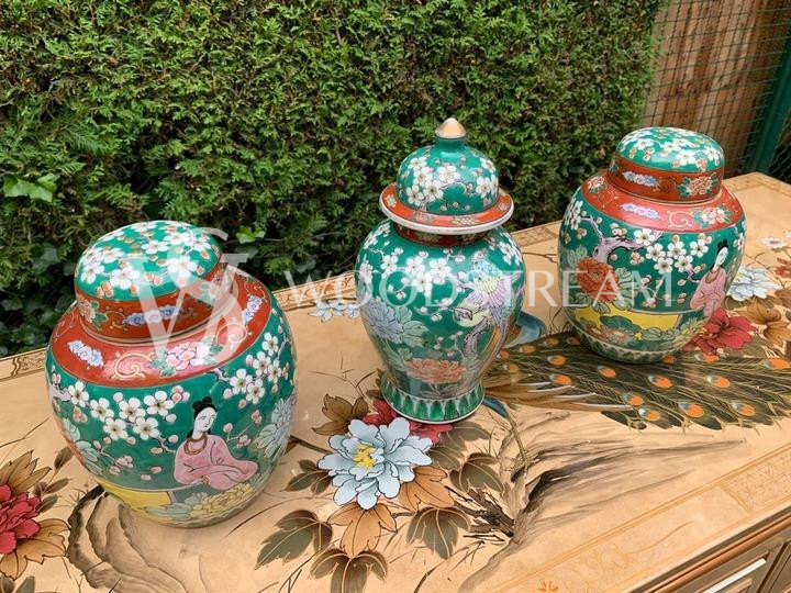 Комплект: Ваза с крышкой 3 штуки в стиле шинуазри / Арт-И15696
