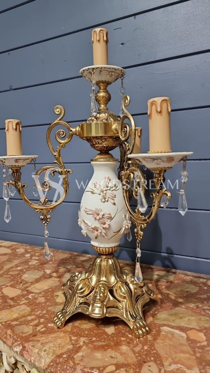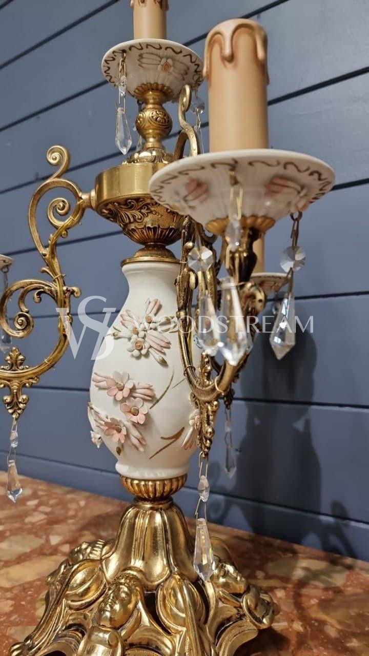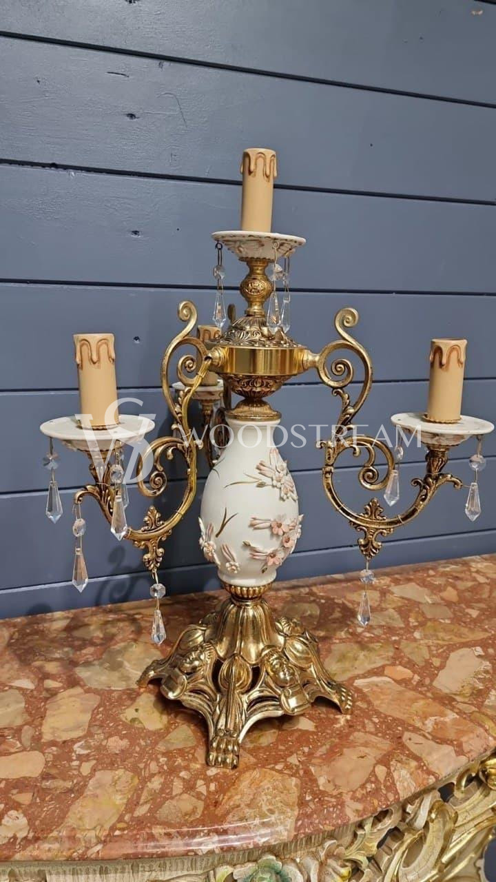 Лампа настольная винтажная в форме подсвечника Каподимонте / Арт-И15901