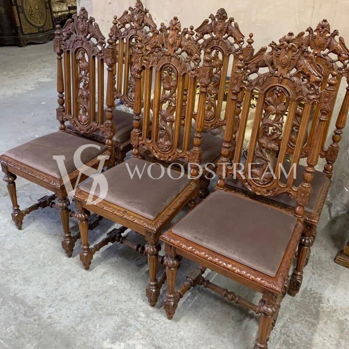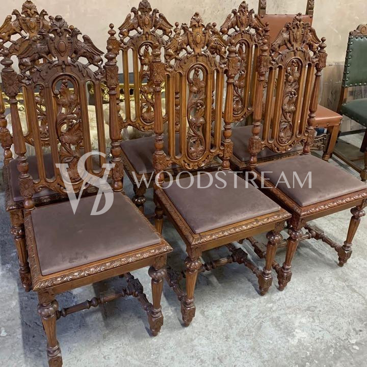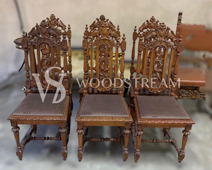 Комплект: Стул 6 штук в охотничьем стиле после реставрации / Арт-И15943