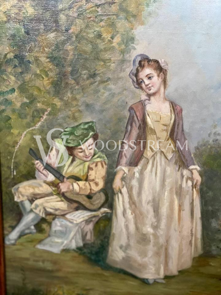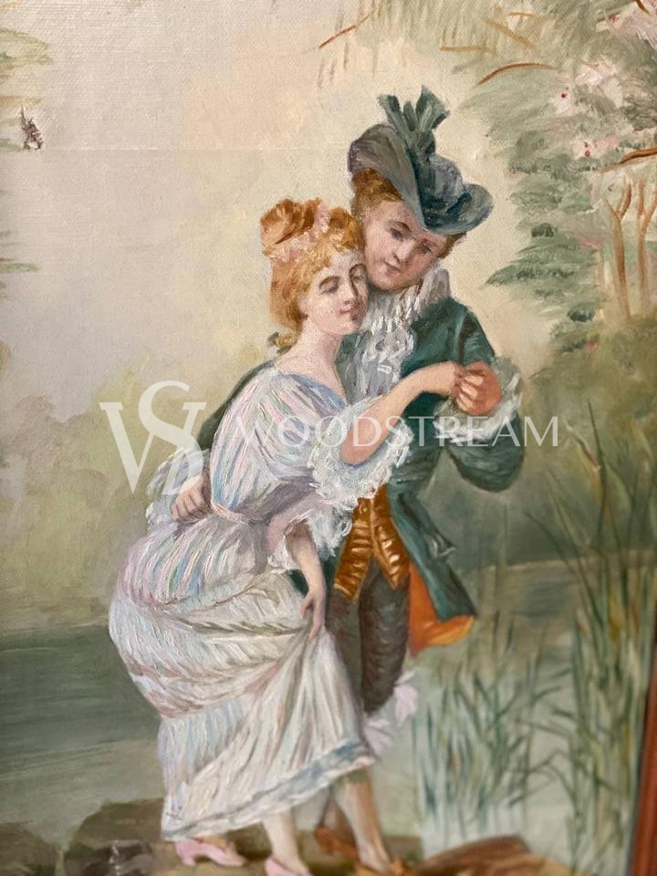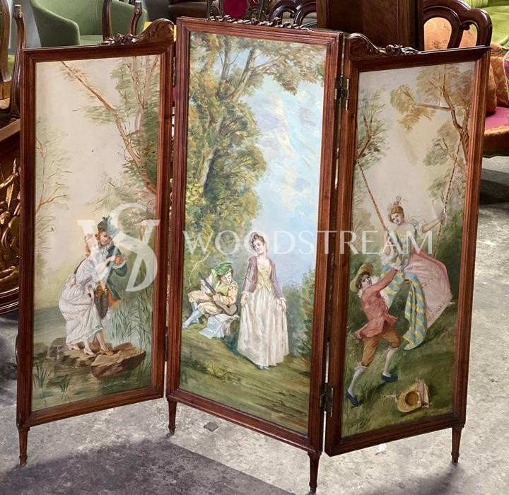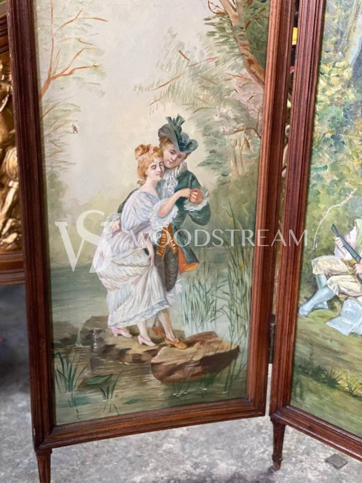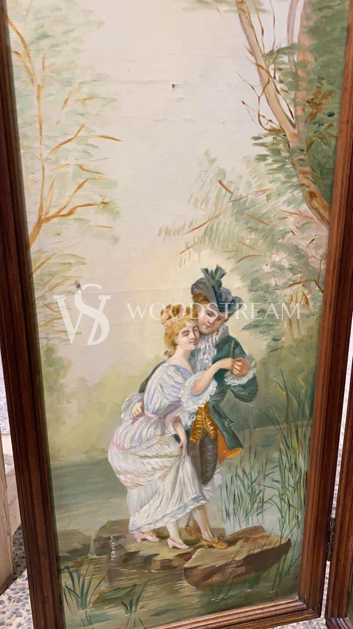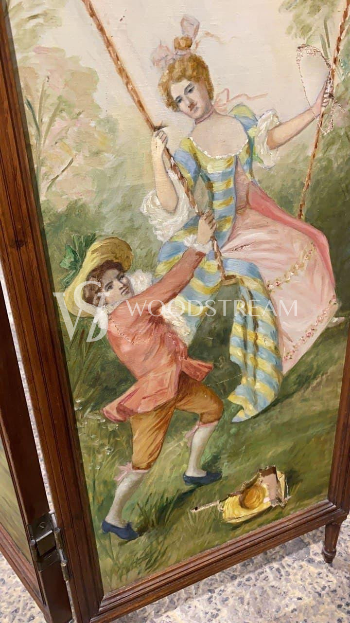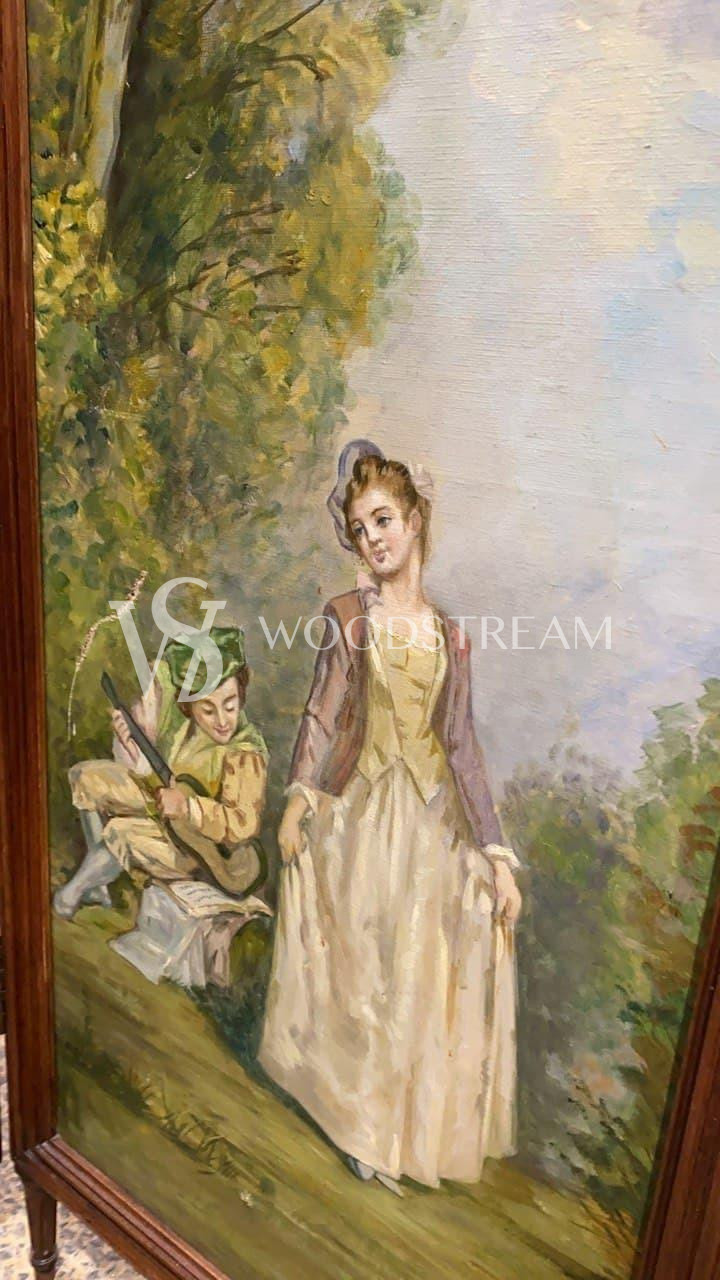 Ширма винтажная с росписью с галантными сценами / Арт-И16087