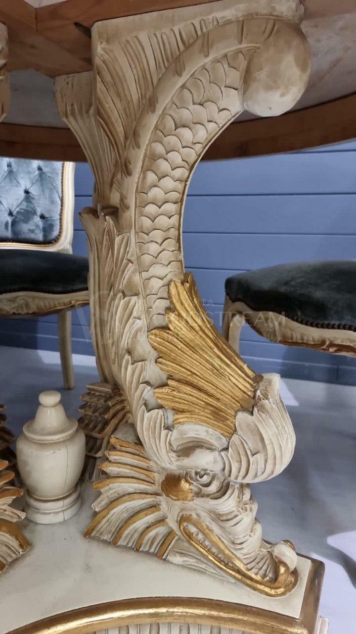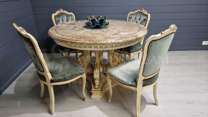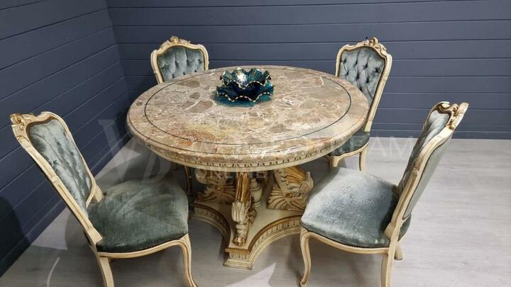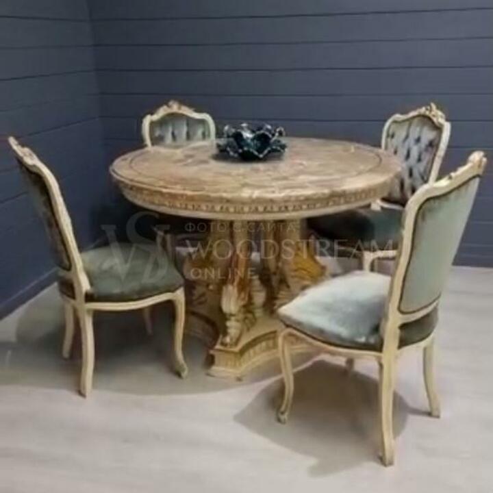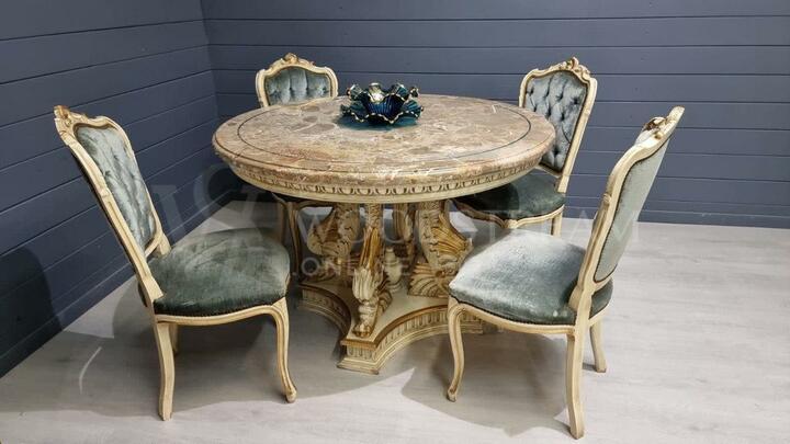 Комплект обеденный: стол и стул 4 штуки в стиле венецианского барокко / Арт-И17375