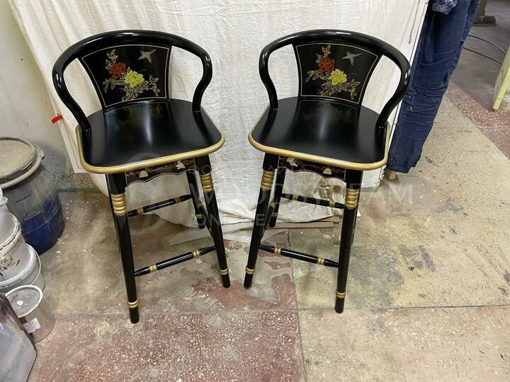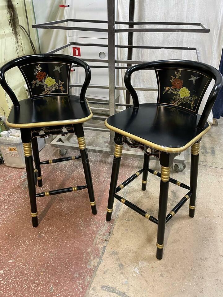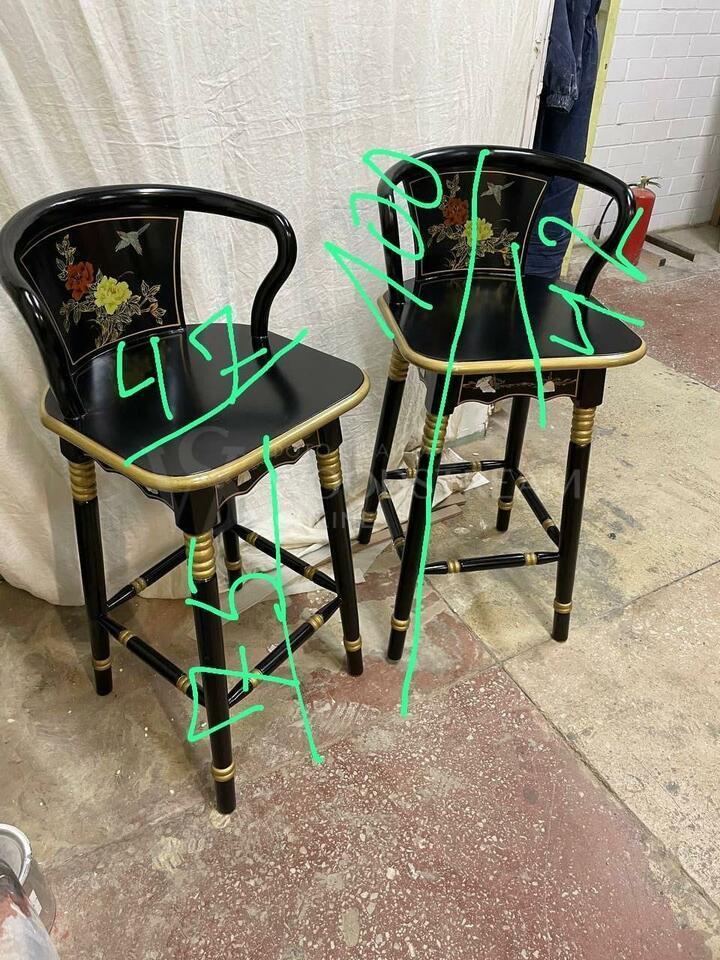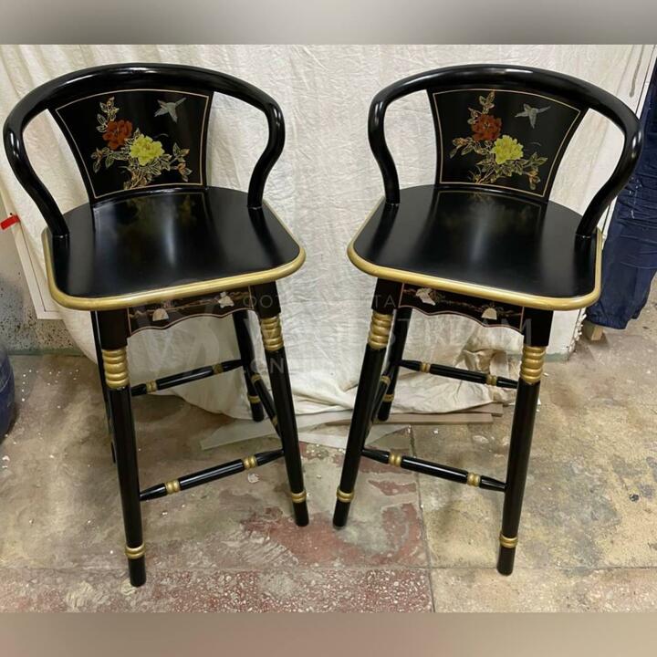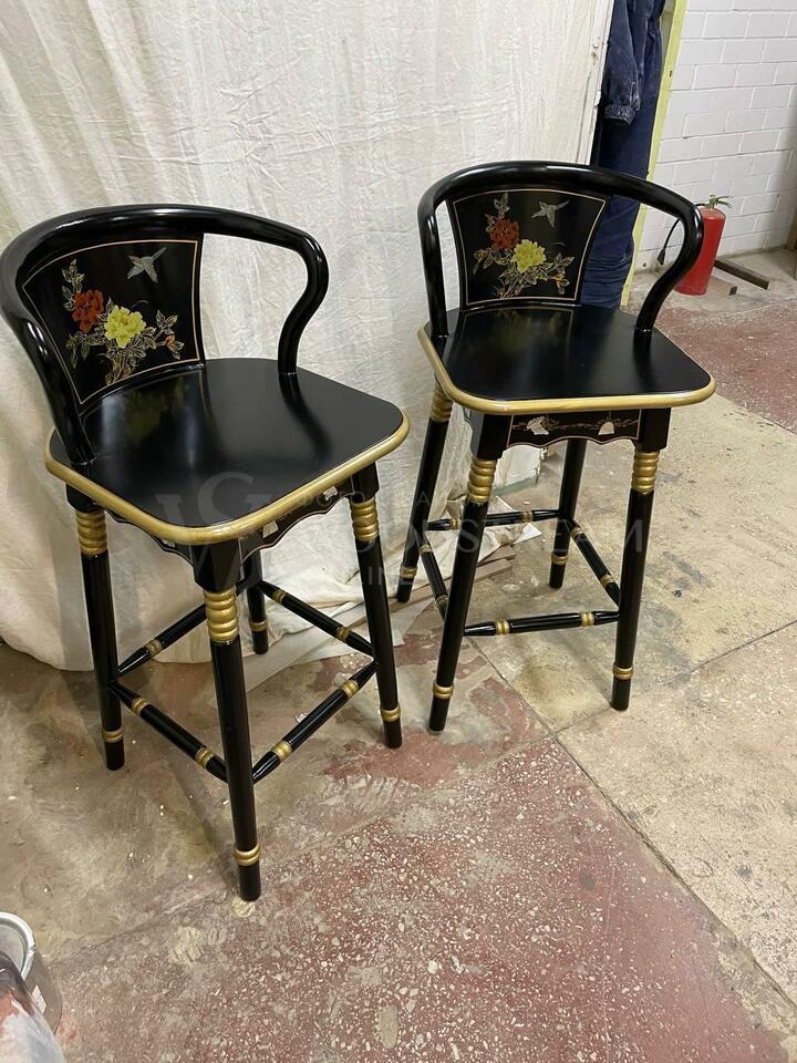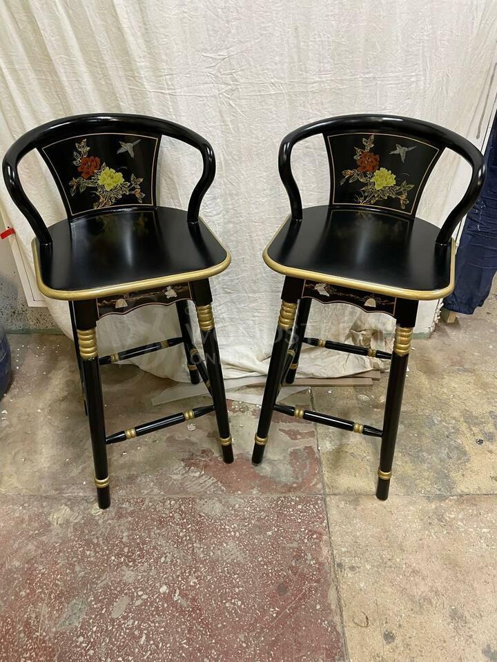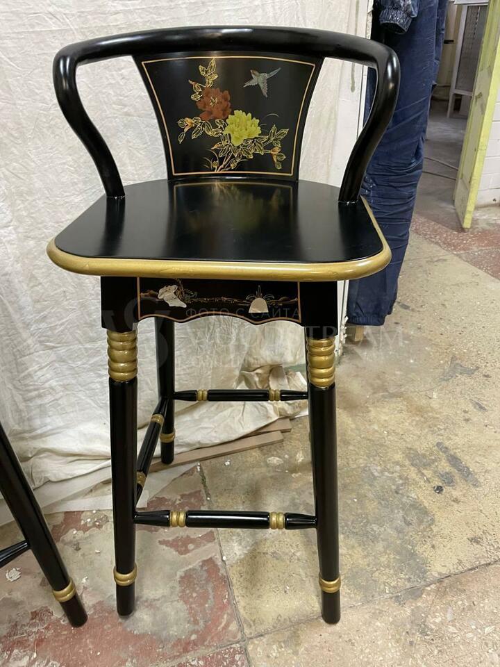 Стул барный в стиле шинуазри 2 штуки после реставрации / Арт-И17532
