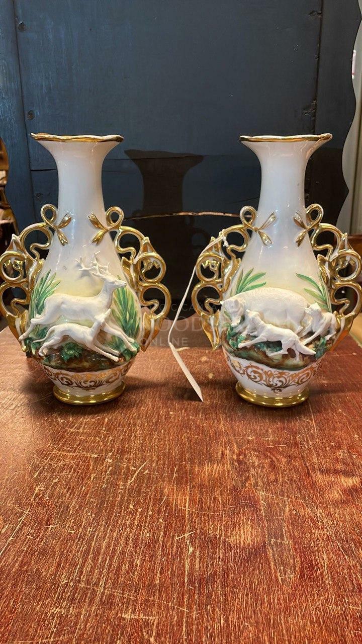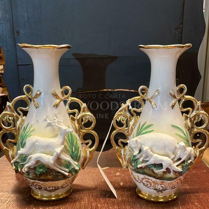 Ваза винтажная 2 штуки со сценами охоты / Арт-И17693