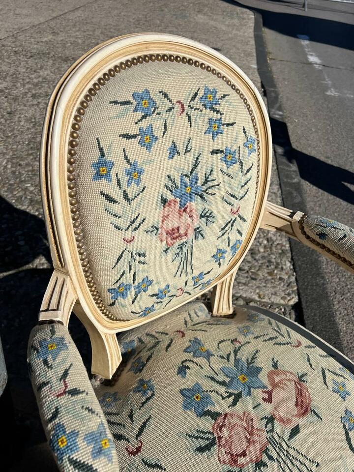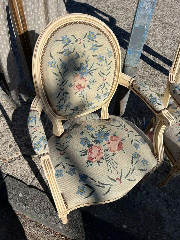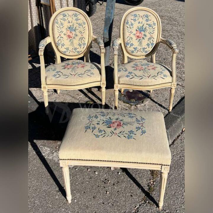 Комплект: Кресло в стиле Людовика XVI 2 штуки и пуф/табурет/банкетка / Арт-И17707