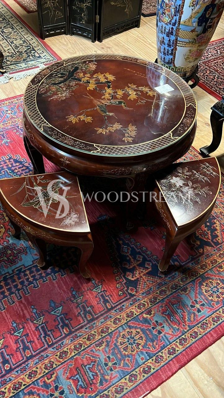 Комплект для чаепитий в стиле шинуазри: стол и табурет 4 штуки / Арт-И18085