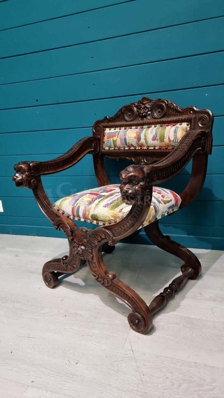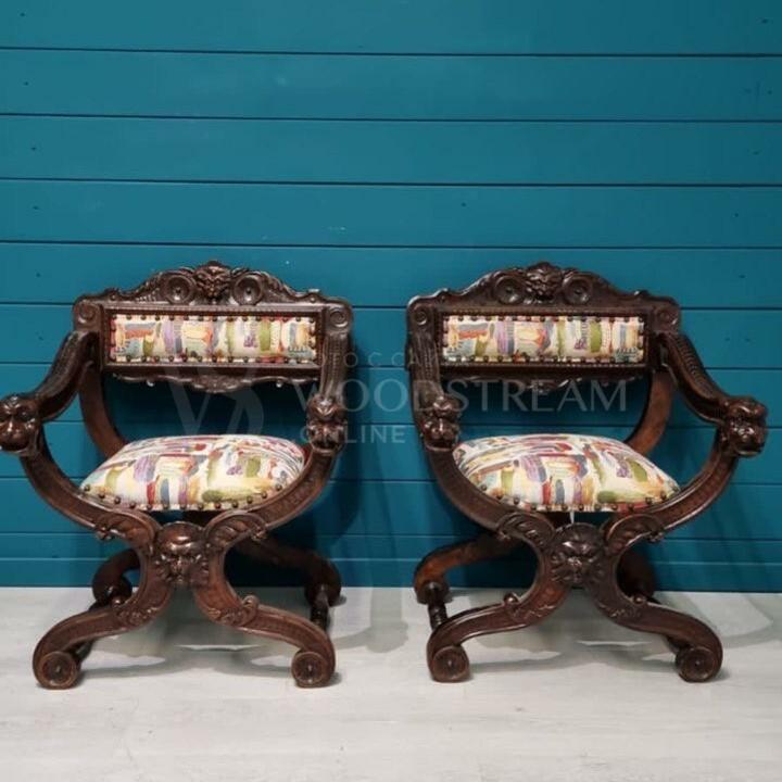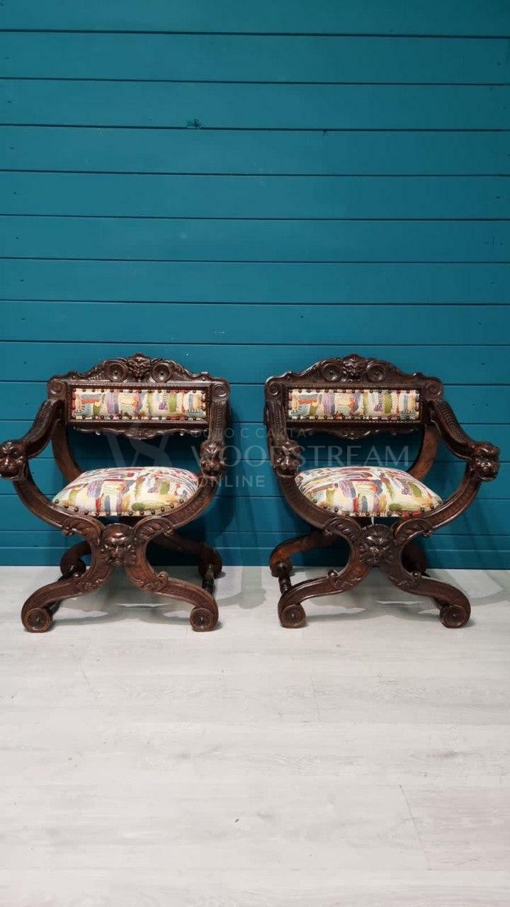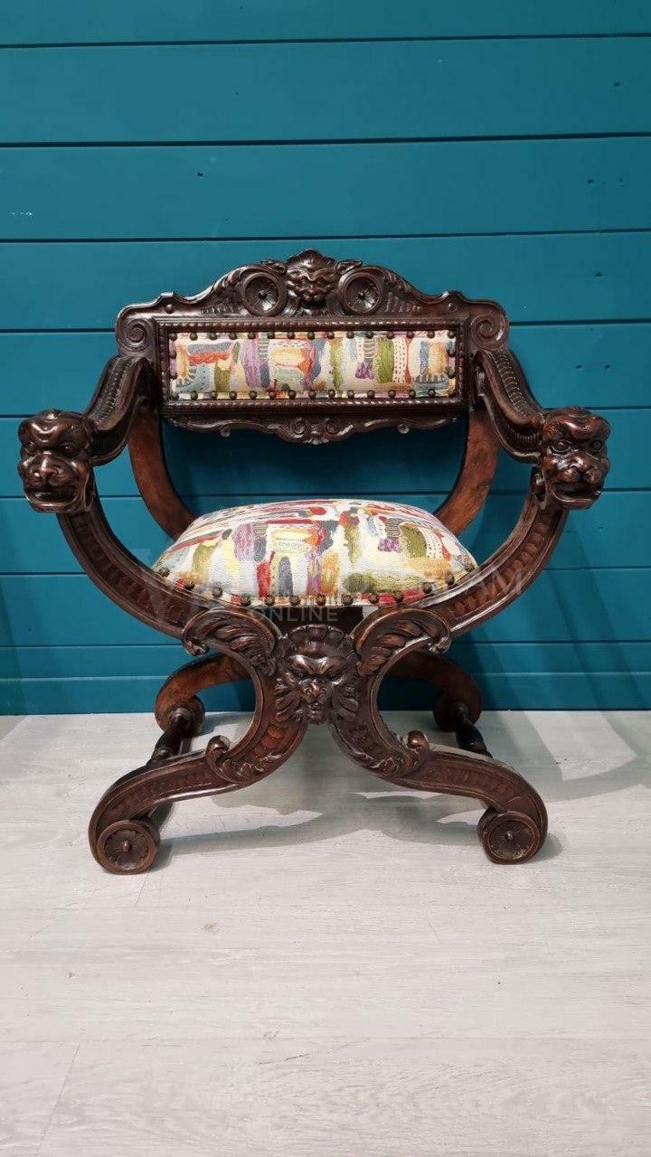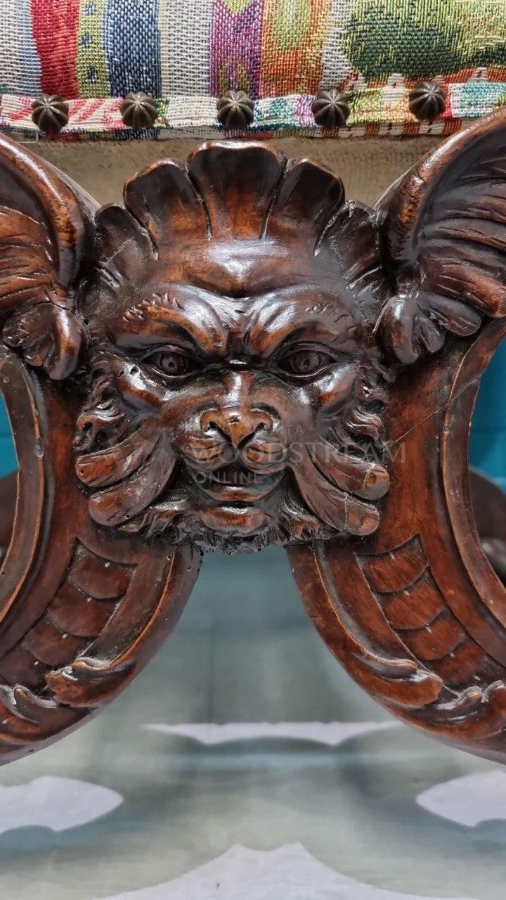 Кресло курульное/табурет 2 штуки в стиле ренессанс / Арт-И18168
