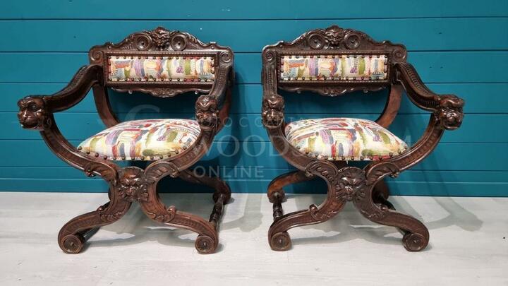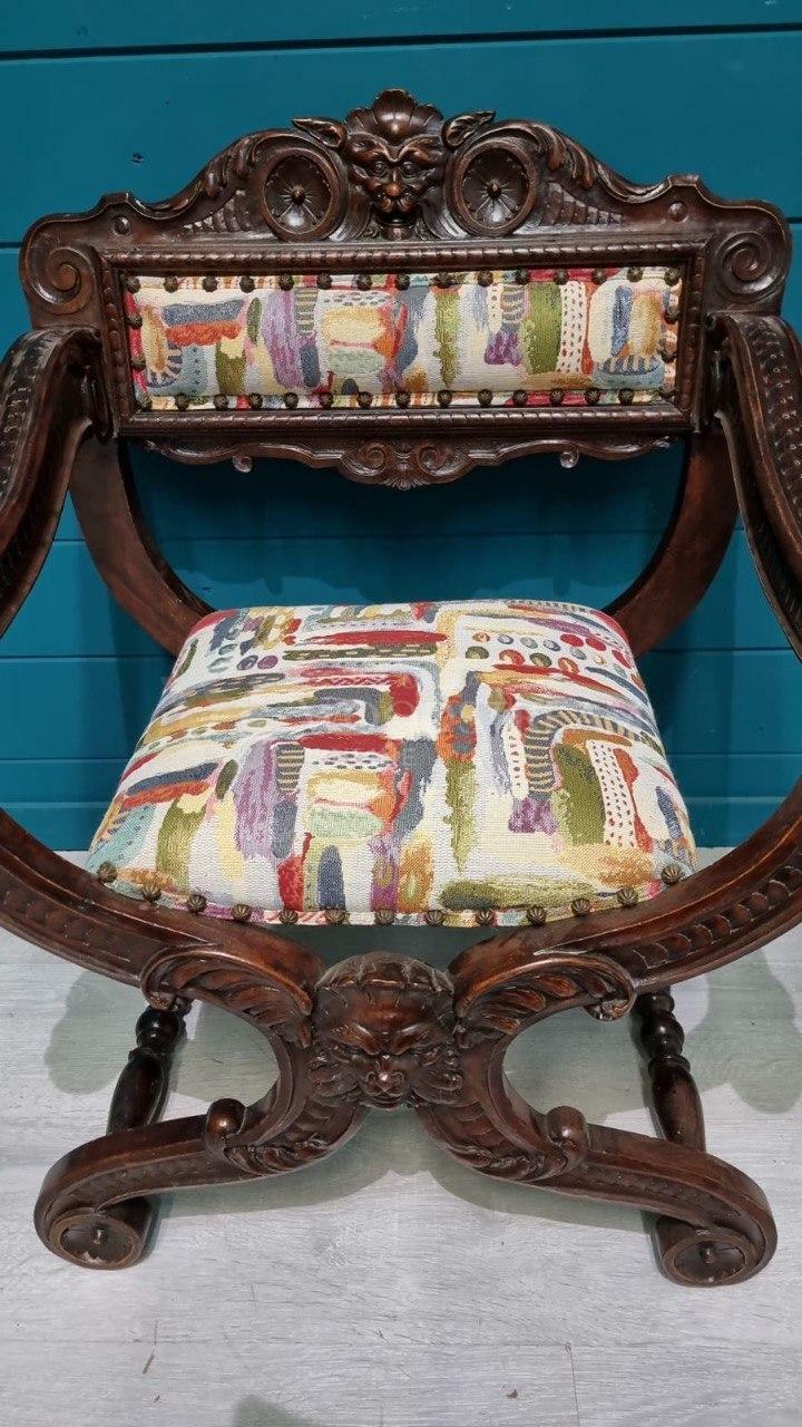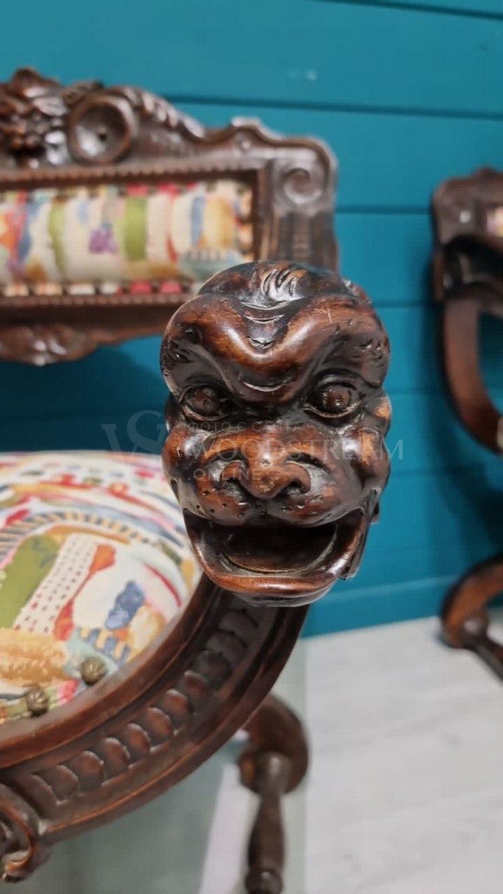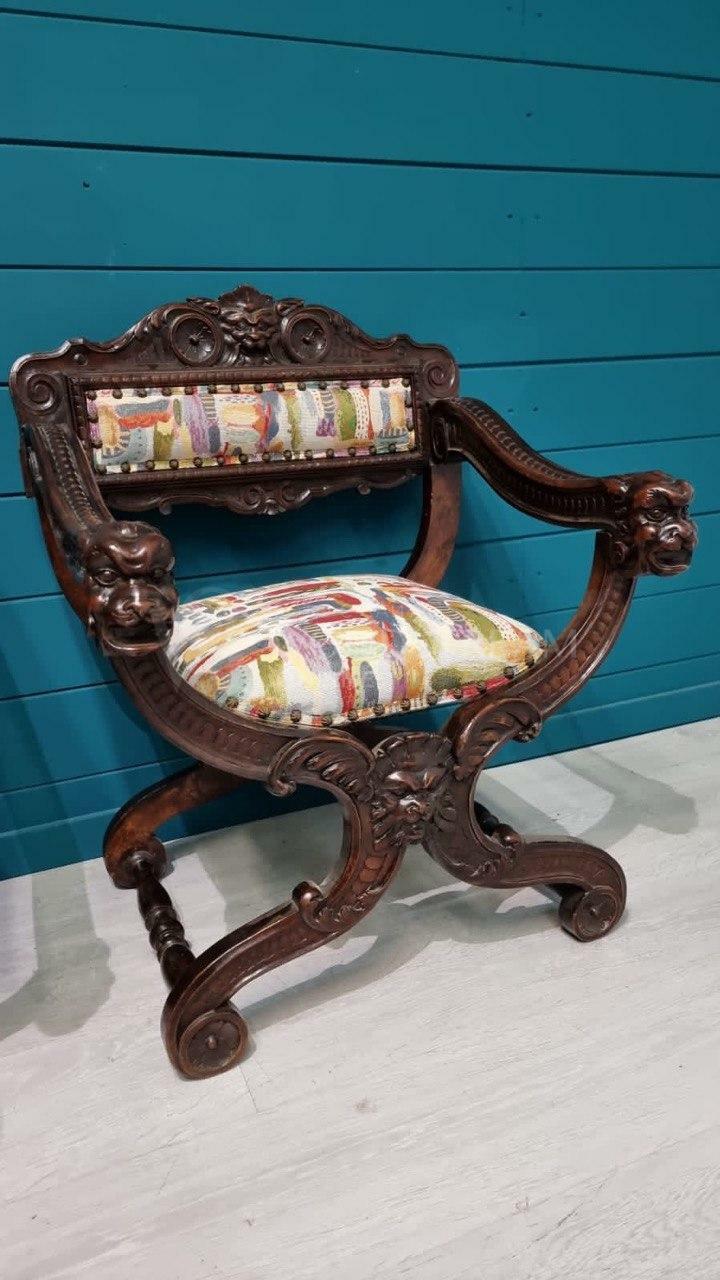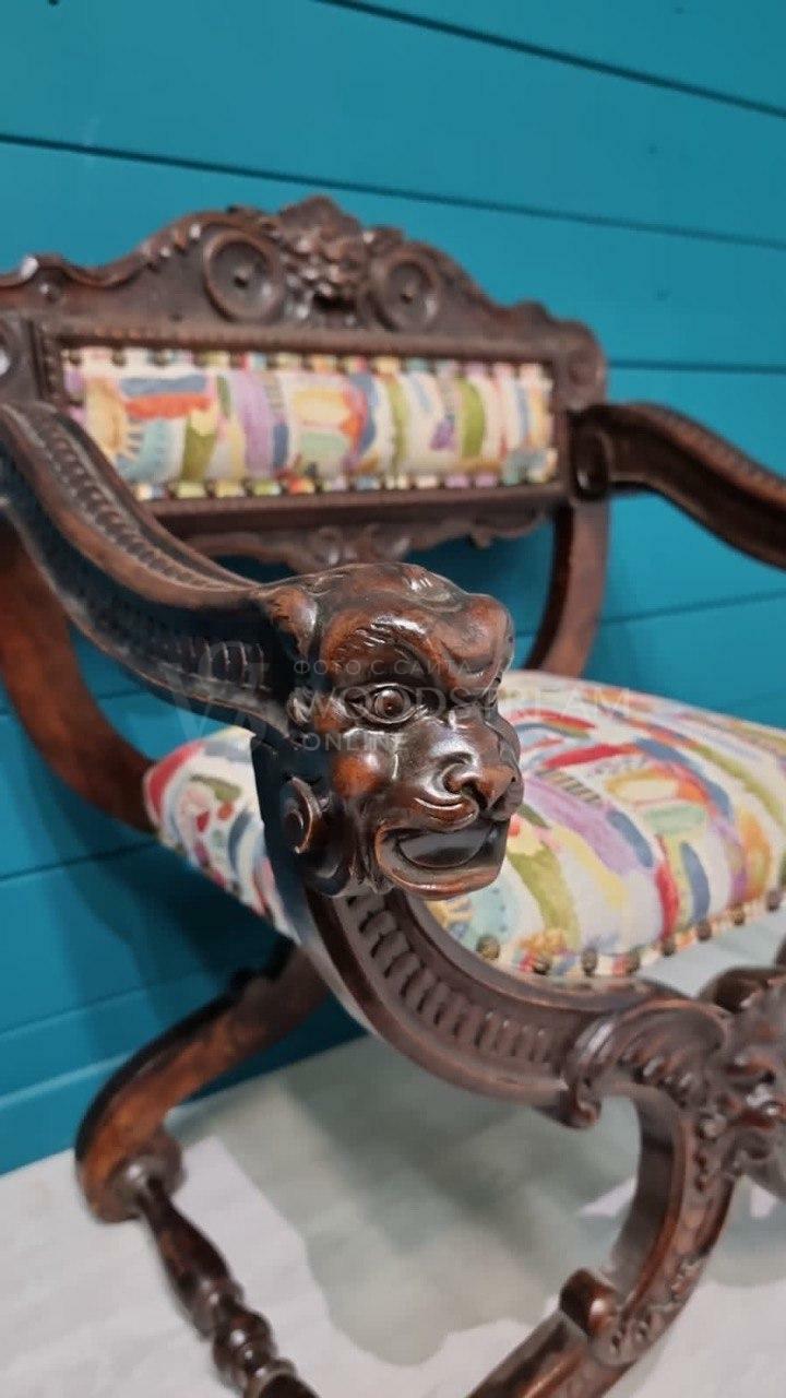 Кресло курульное/табурет 2 штуки в стиле ренессанс / Арт-И18168