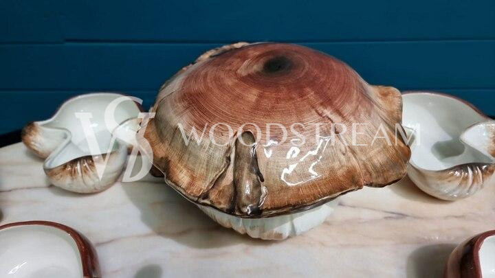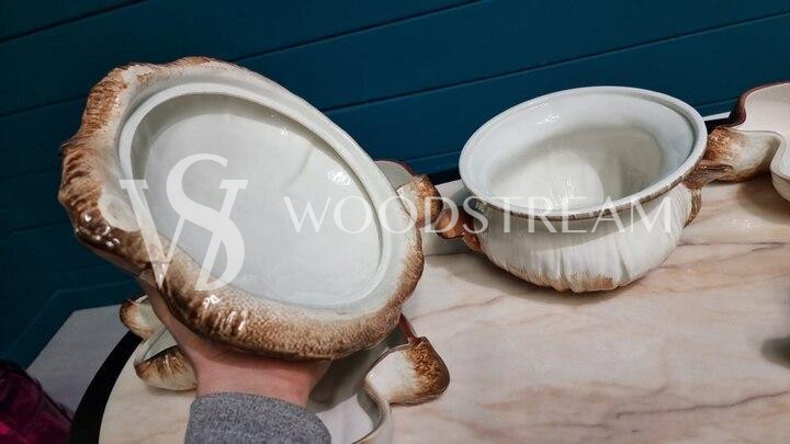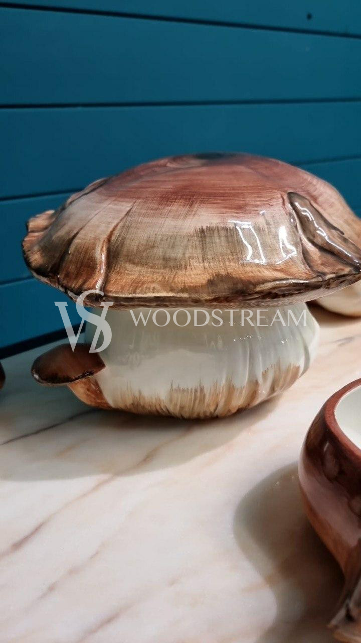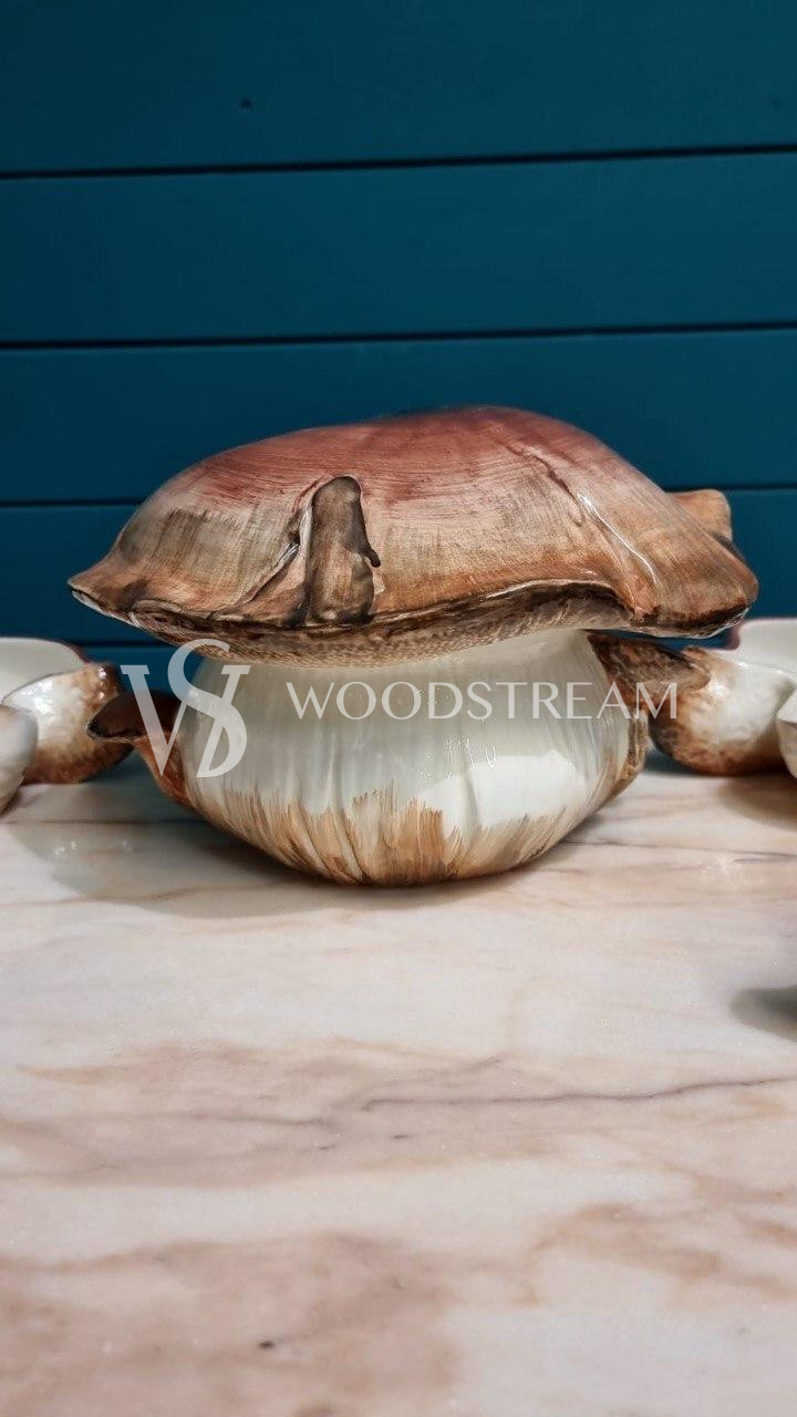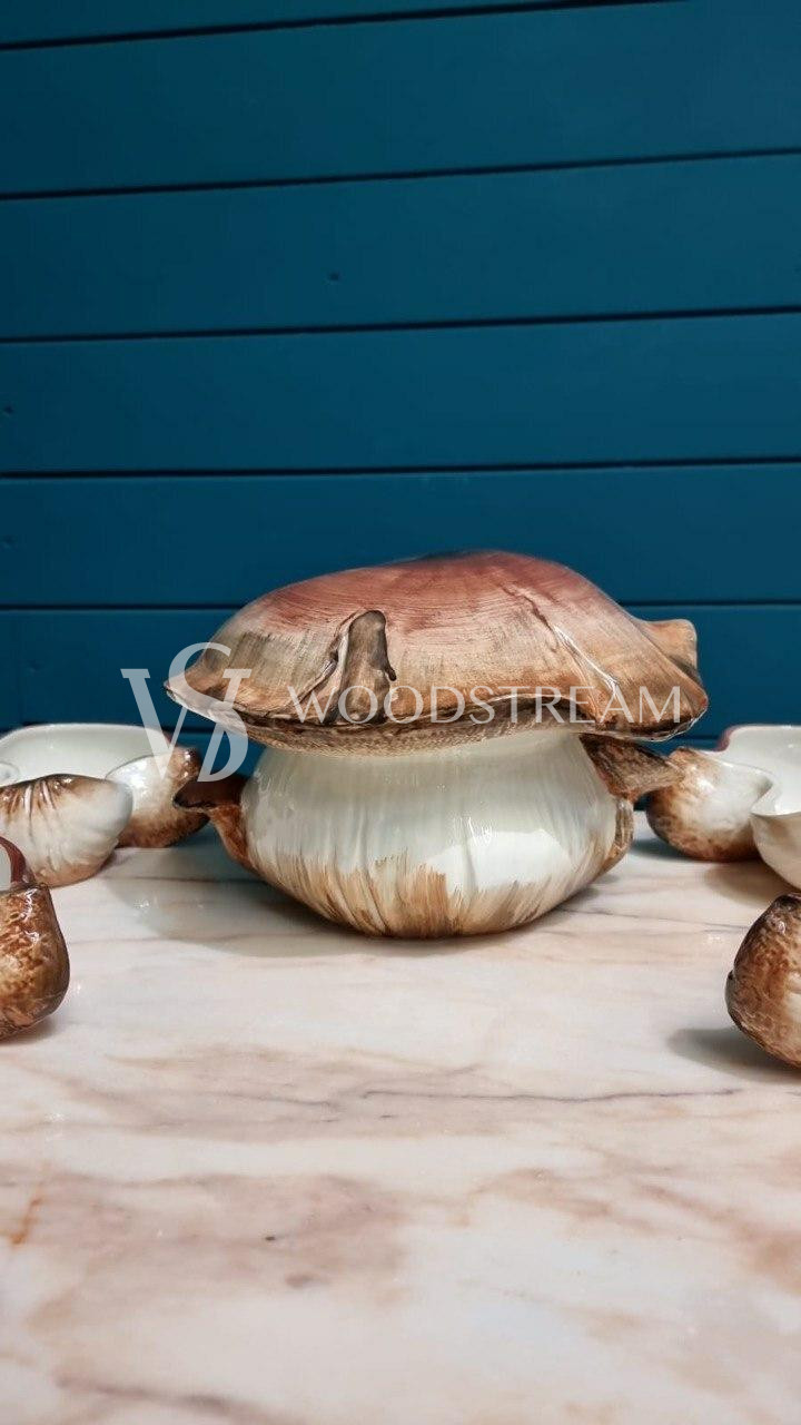 Сервиз "Грибы": блюдо с крышкой в форме гриба и тарелка 6 штук / Арт-И18221