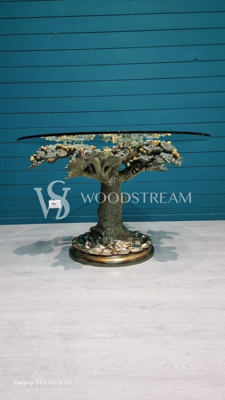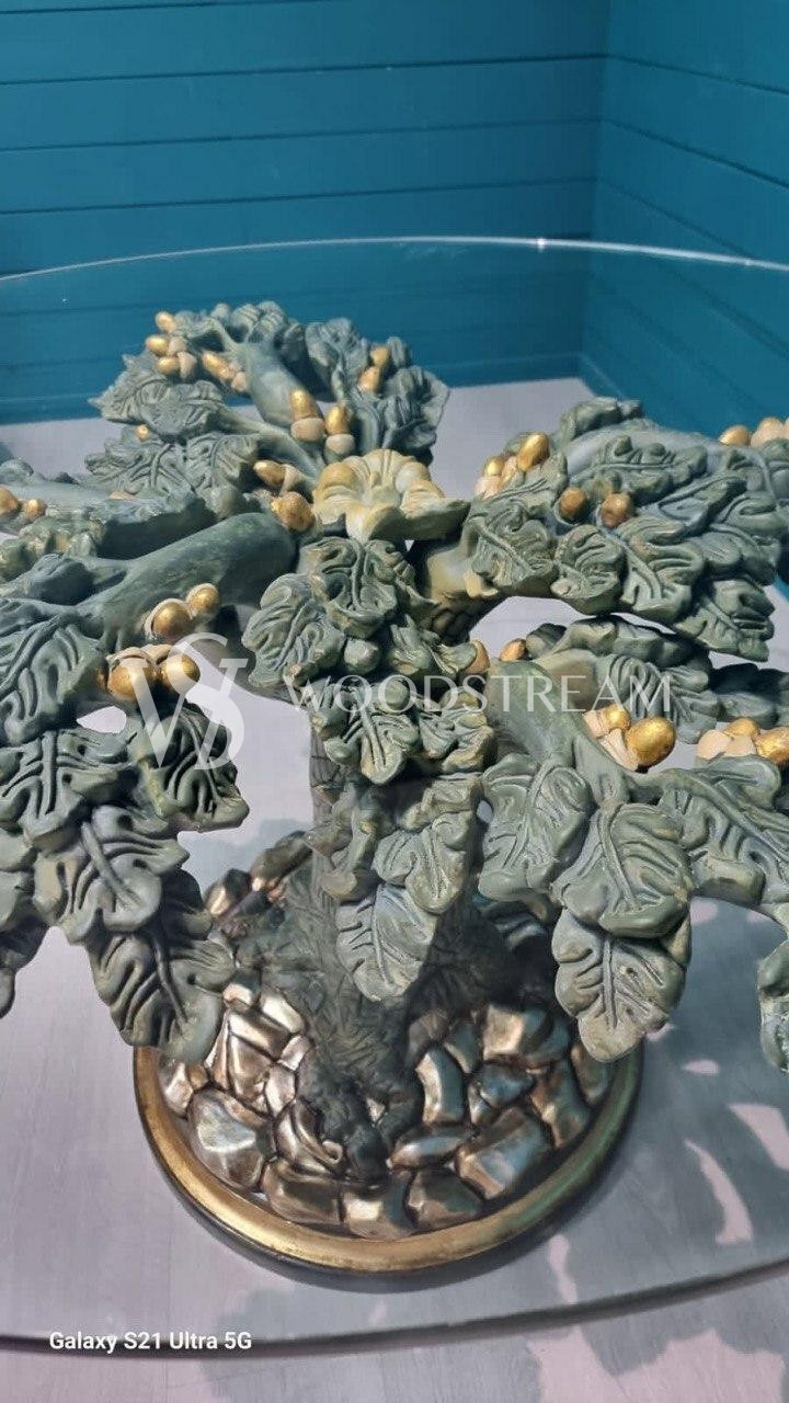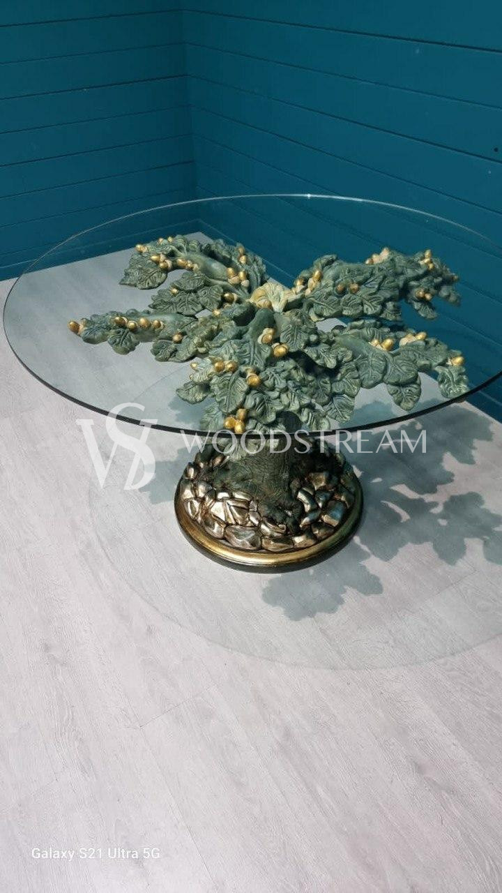 Стол в подстольем в форме дерева и стеклянной столешницей / Арт-И19434