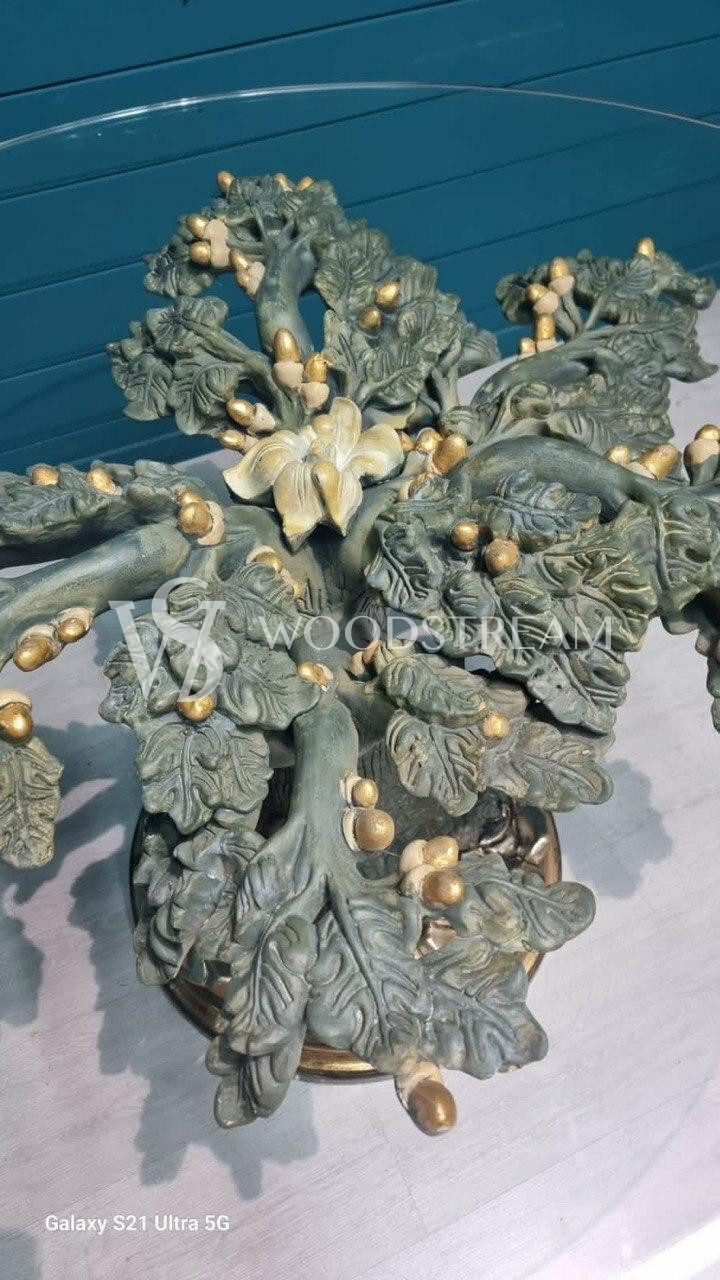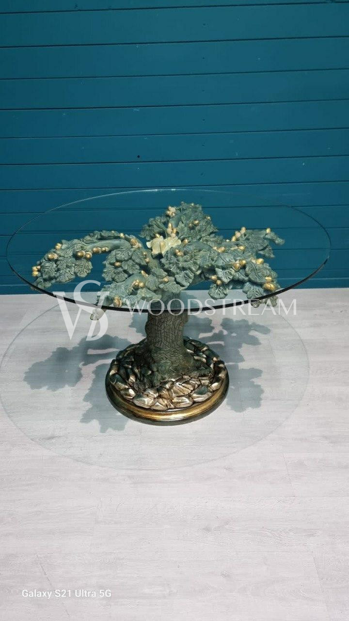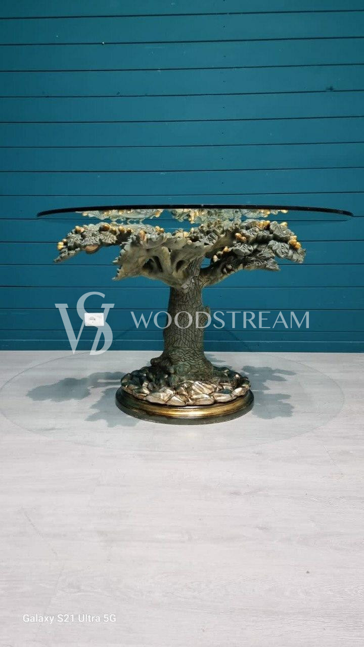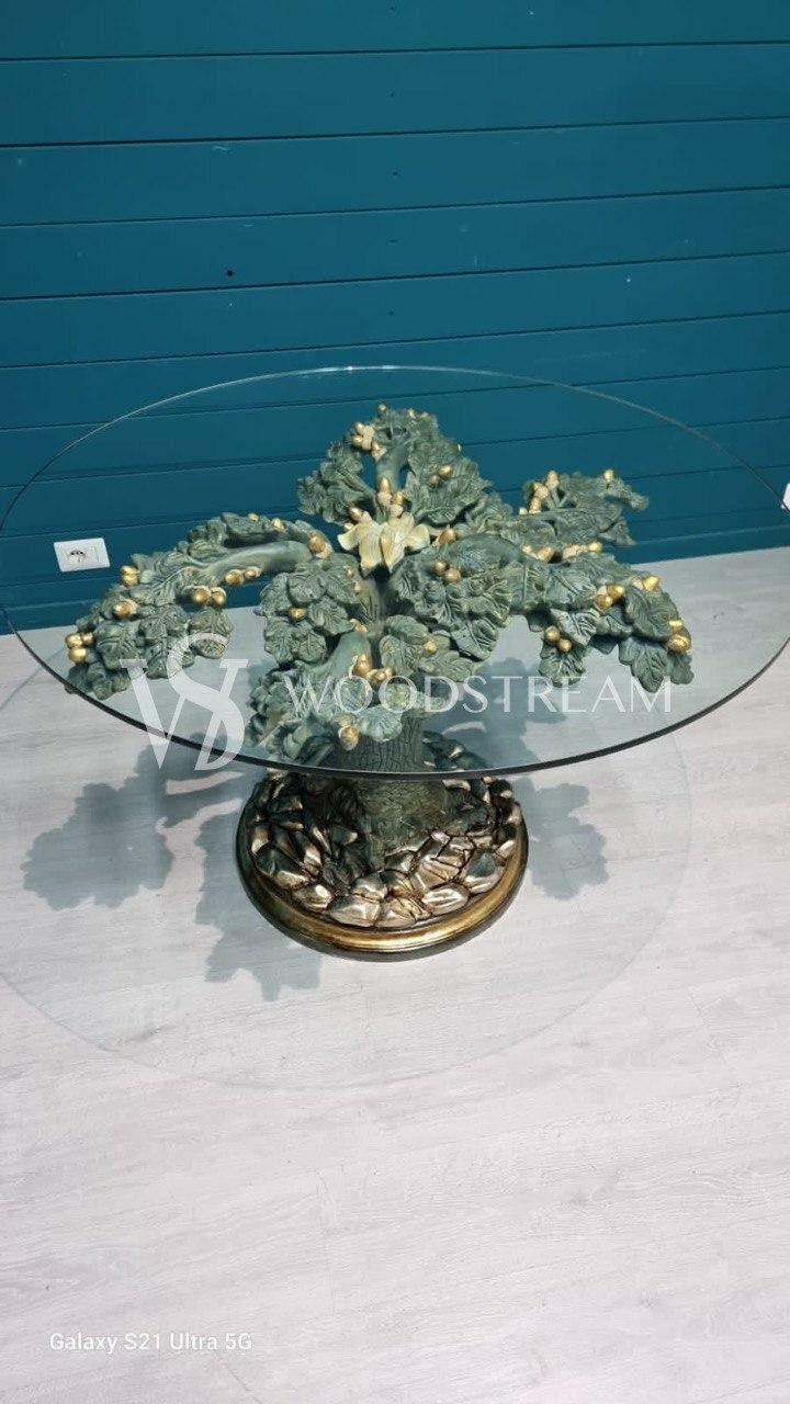 Стол в подстольем в форме дерева и стеклянной столешницей / Арт-И19434