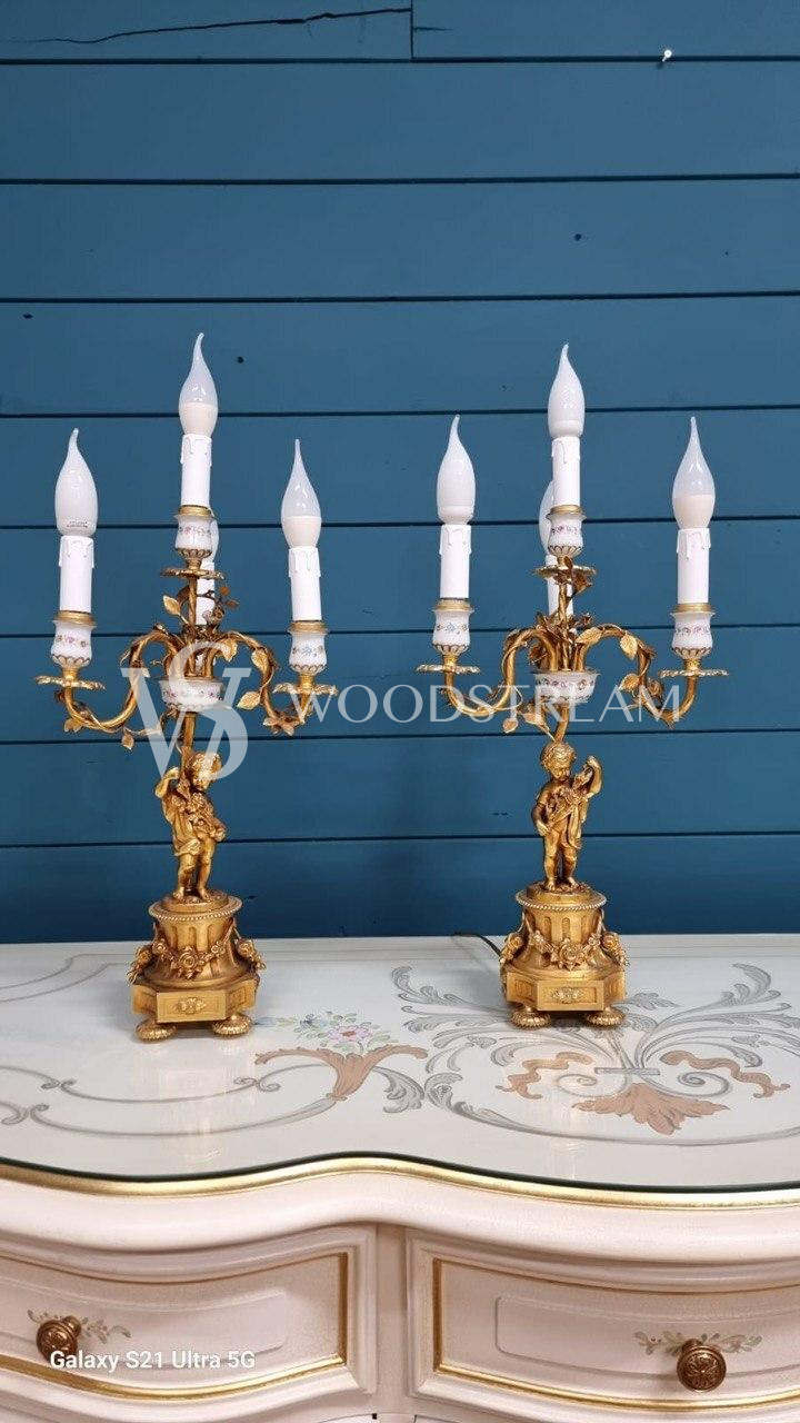 3 Купить «Лампа настольная в форме Подсвечника в стиле венецианского барокко с путти 2 штуки»