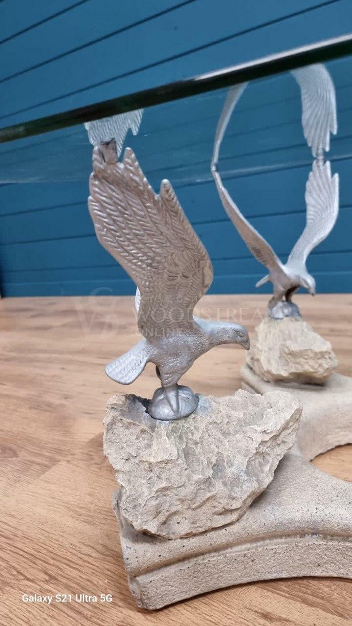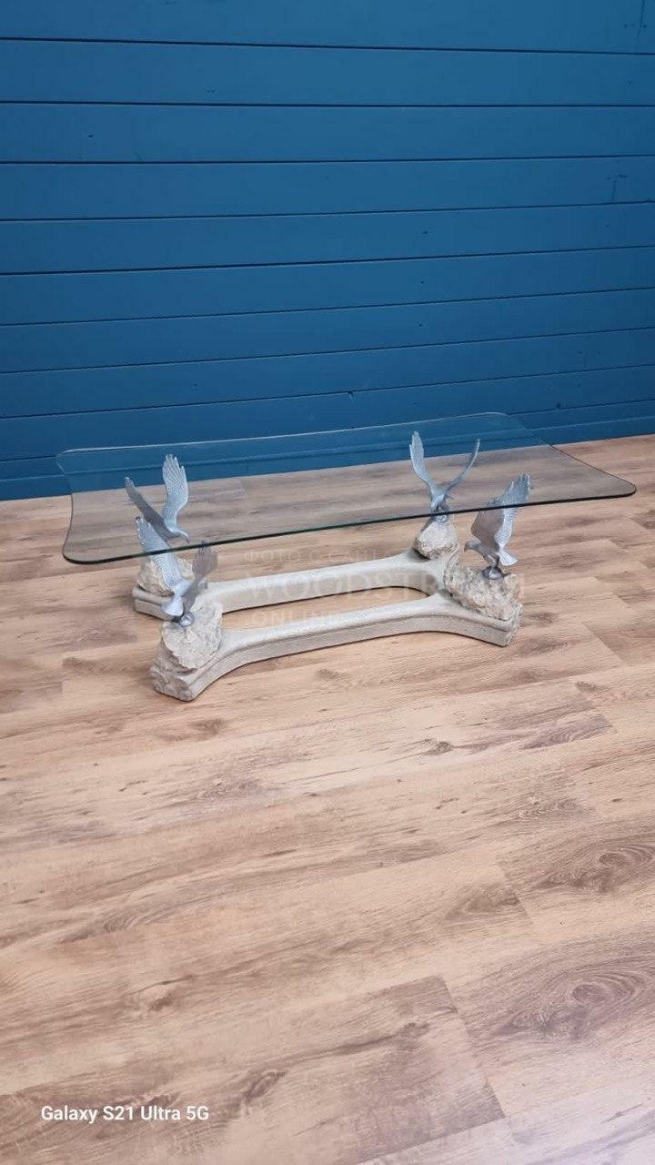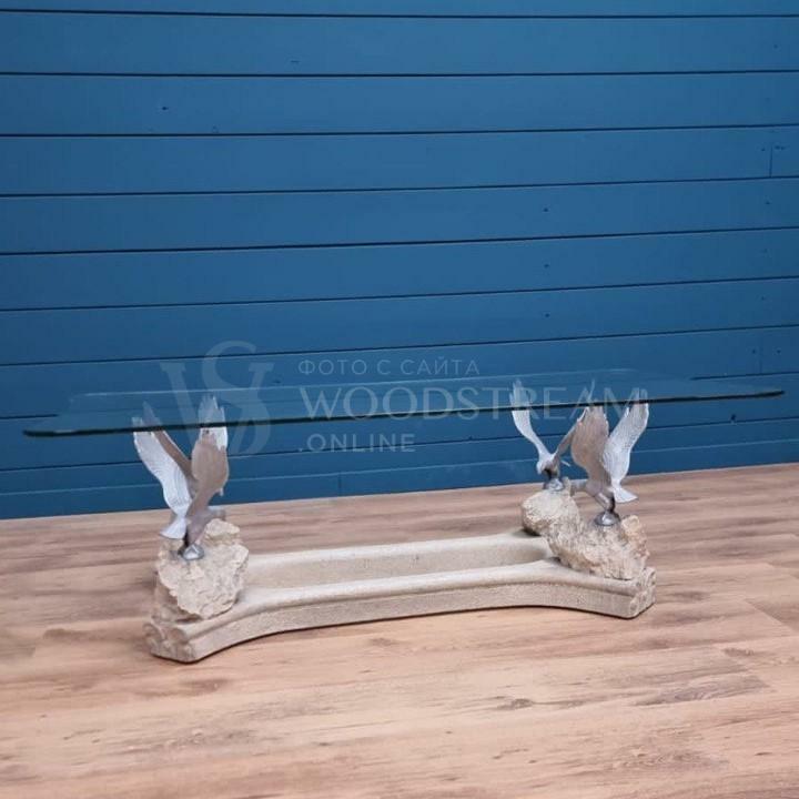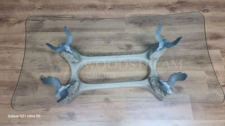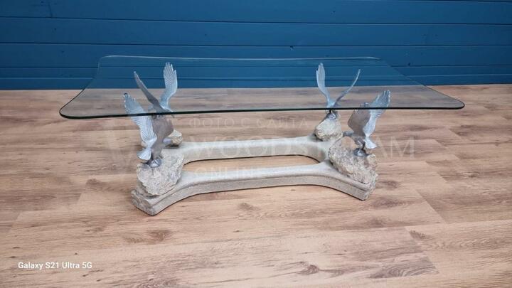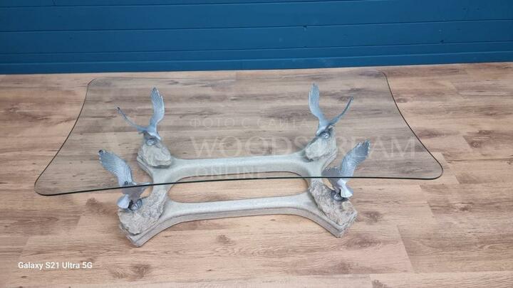 Стол с птицами и стеклянной столешницей / Арт-И19586