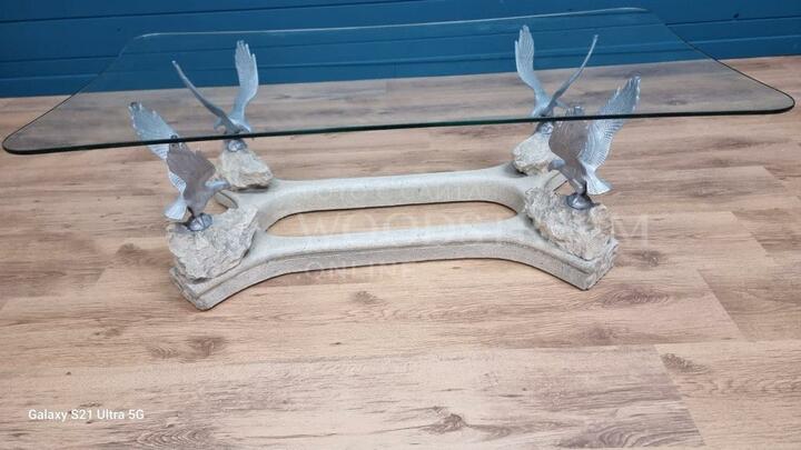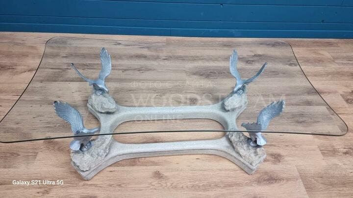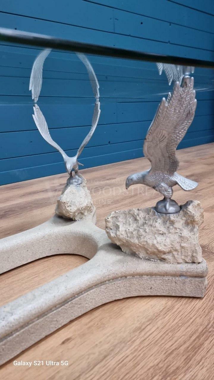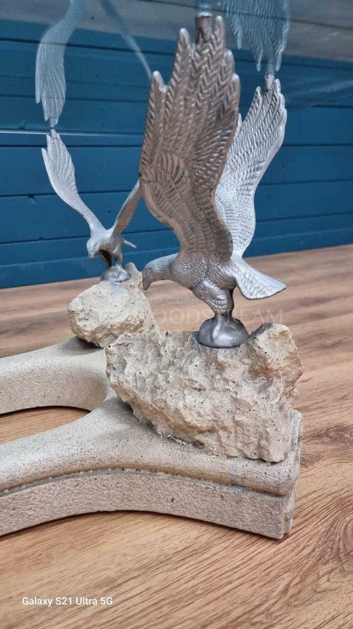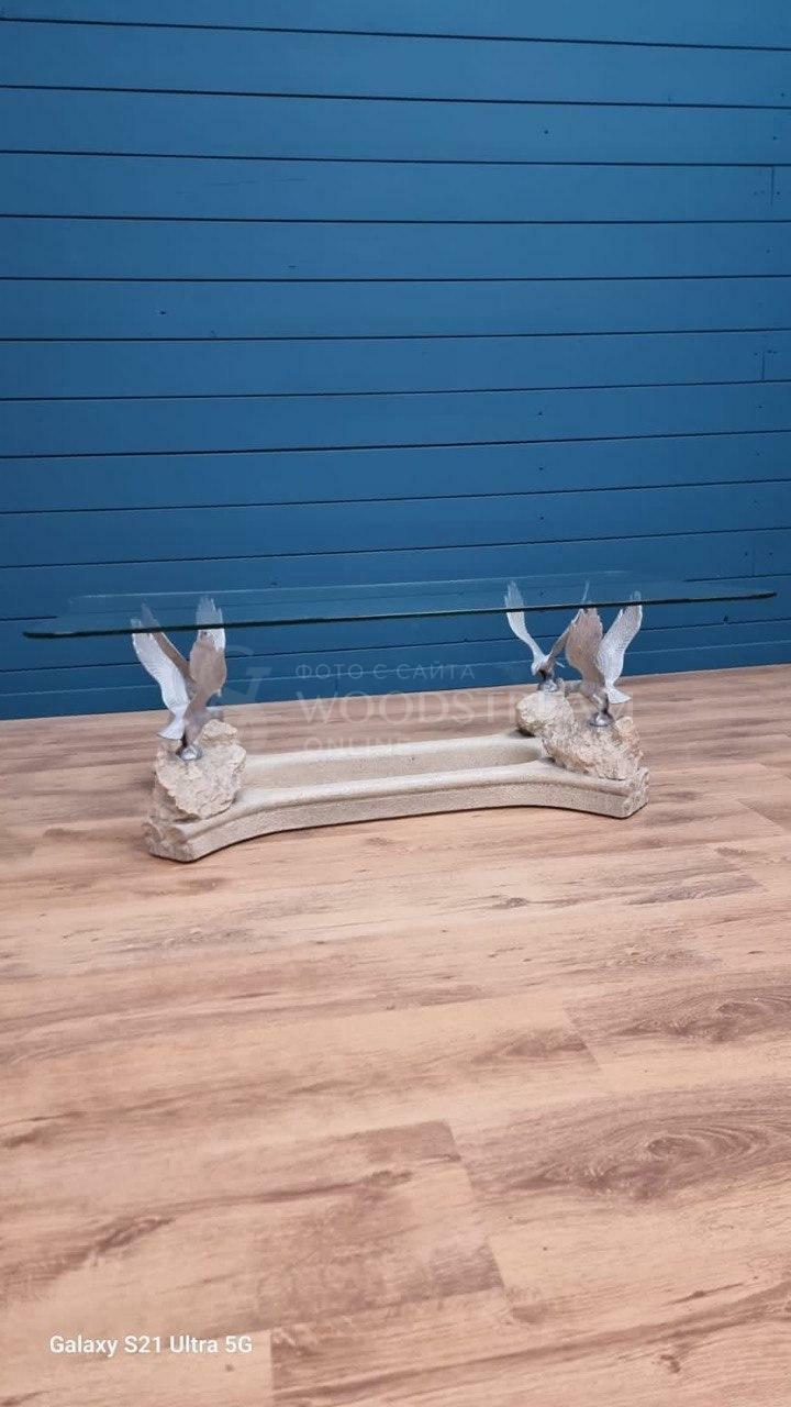 Стол с птицами и стеклянной столешницей / Арт-И19586
