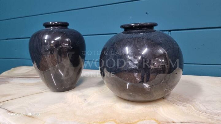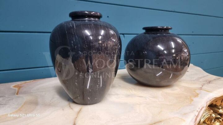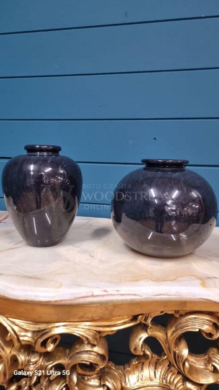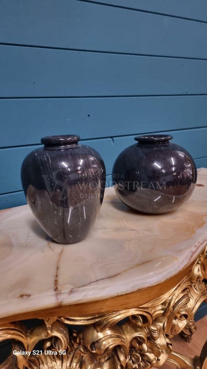 Ваза винтажная из черного мрамора 2 штуки / Арт-И20116