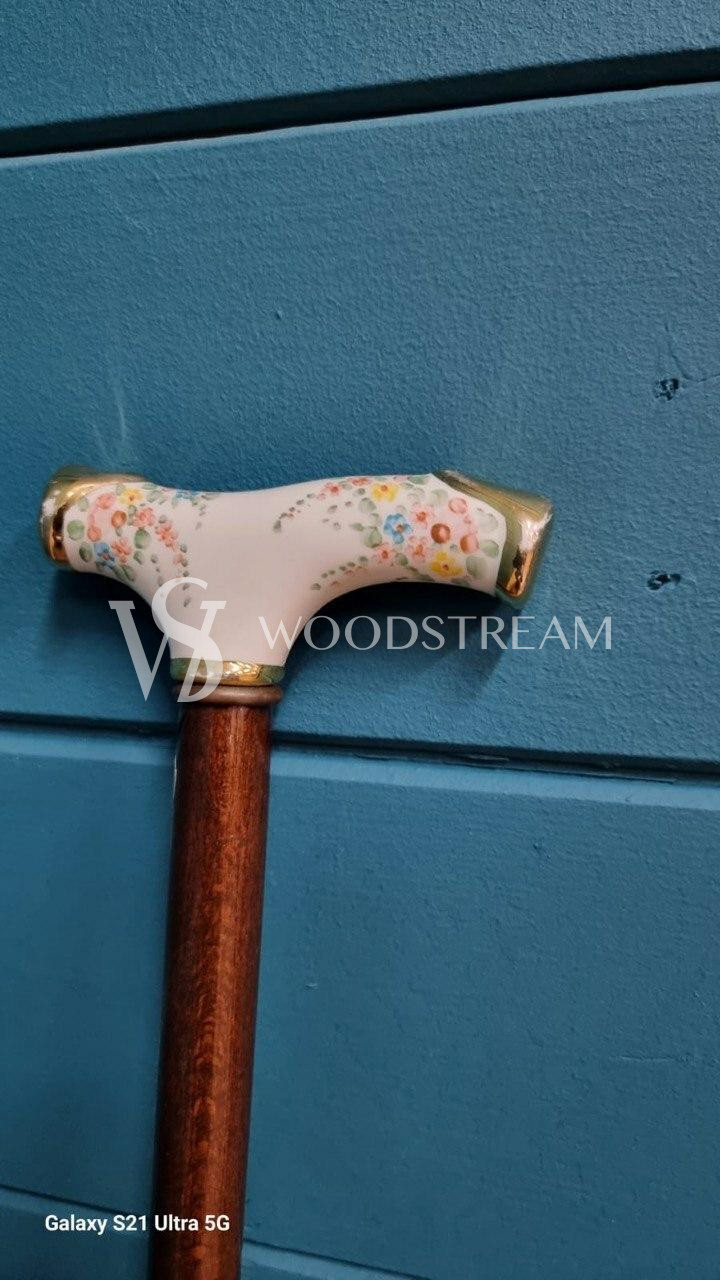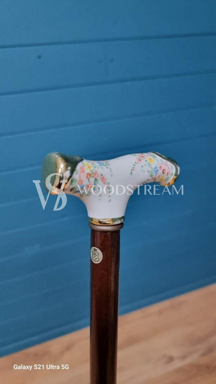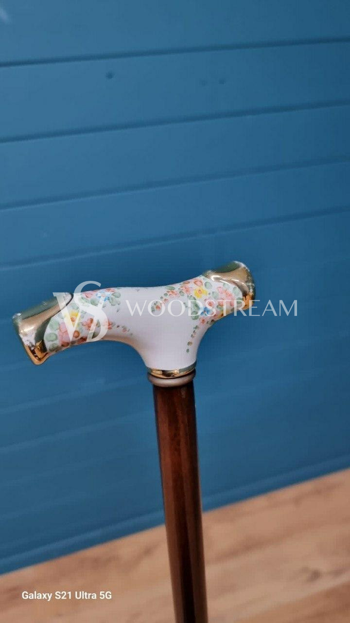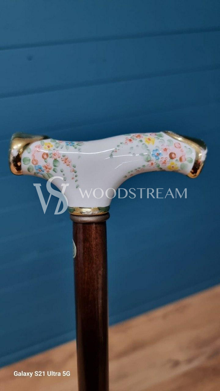 Трость винтажная с фарфоровой рукоятью / Арт-И20118