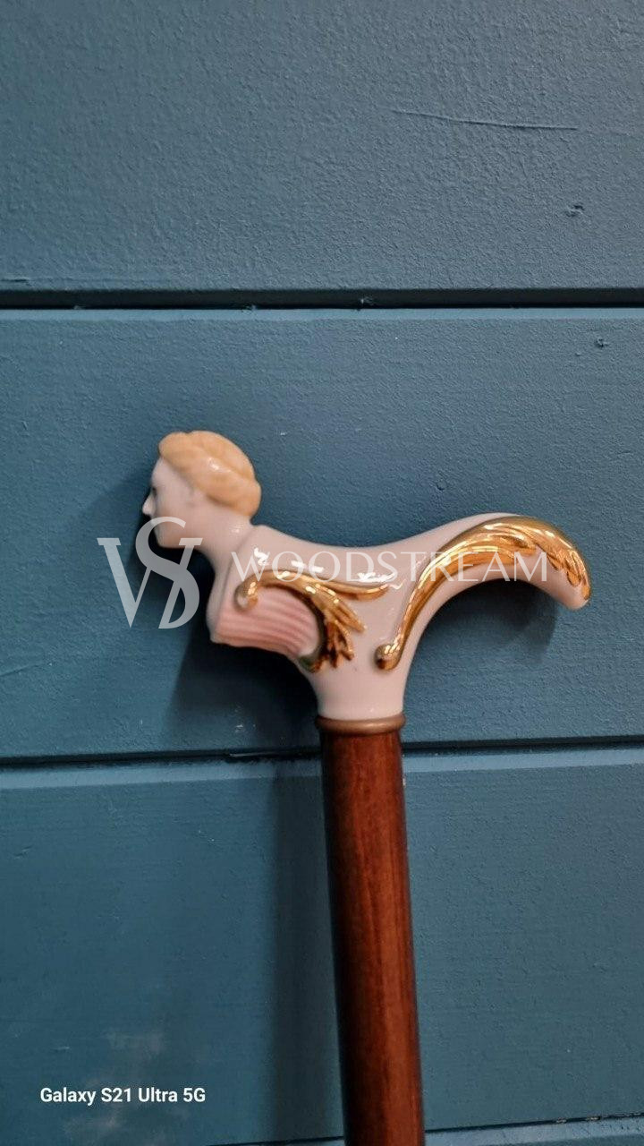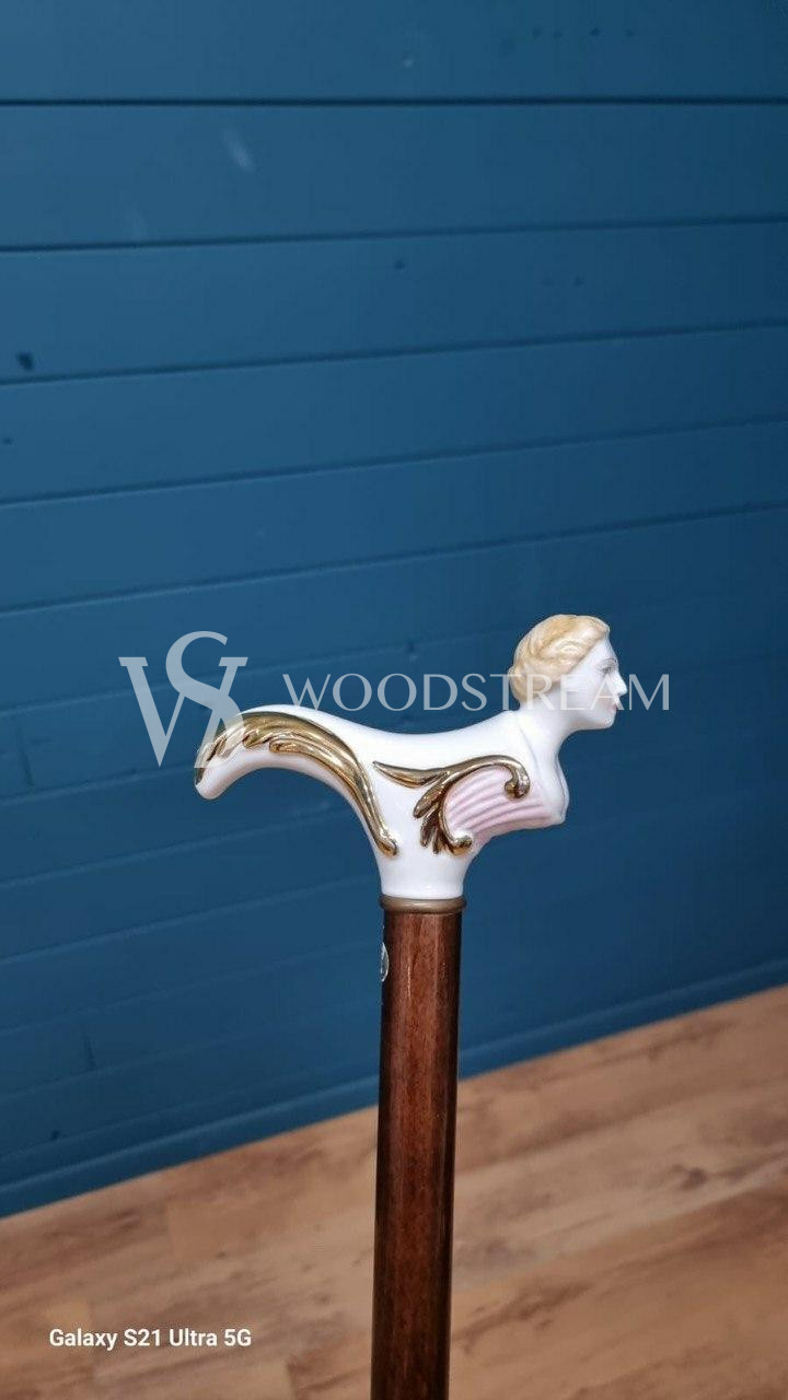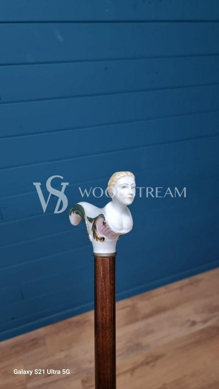 Трость винтажная с фарфоровой рукоятью / Арт-И20119