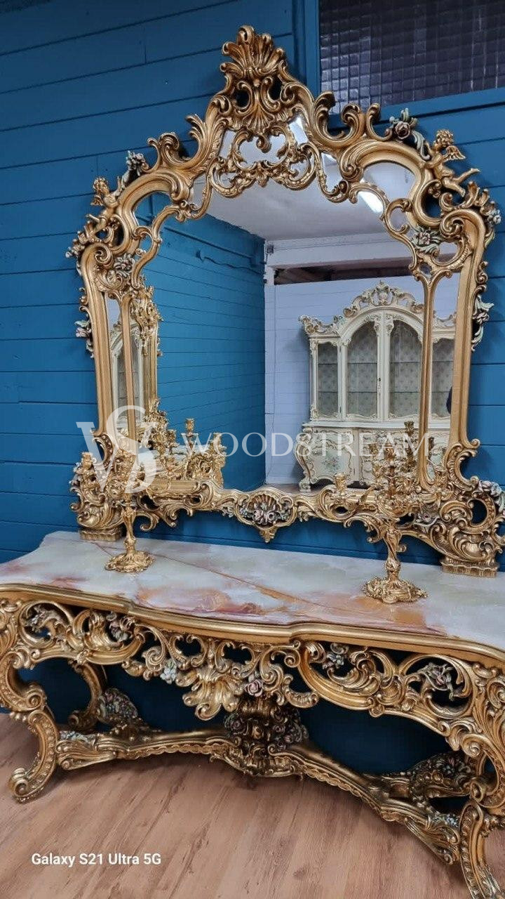 Консоль и зеркало в стиле венецианского барокко от фабрики Silik (2 штуки) / Арт-И20203
