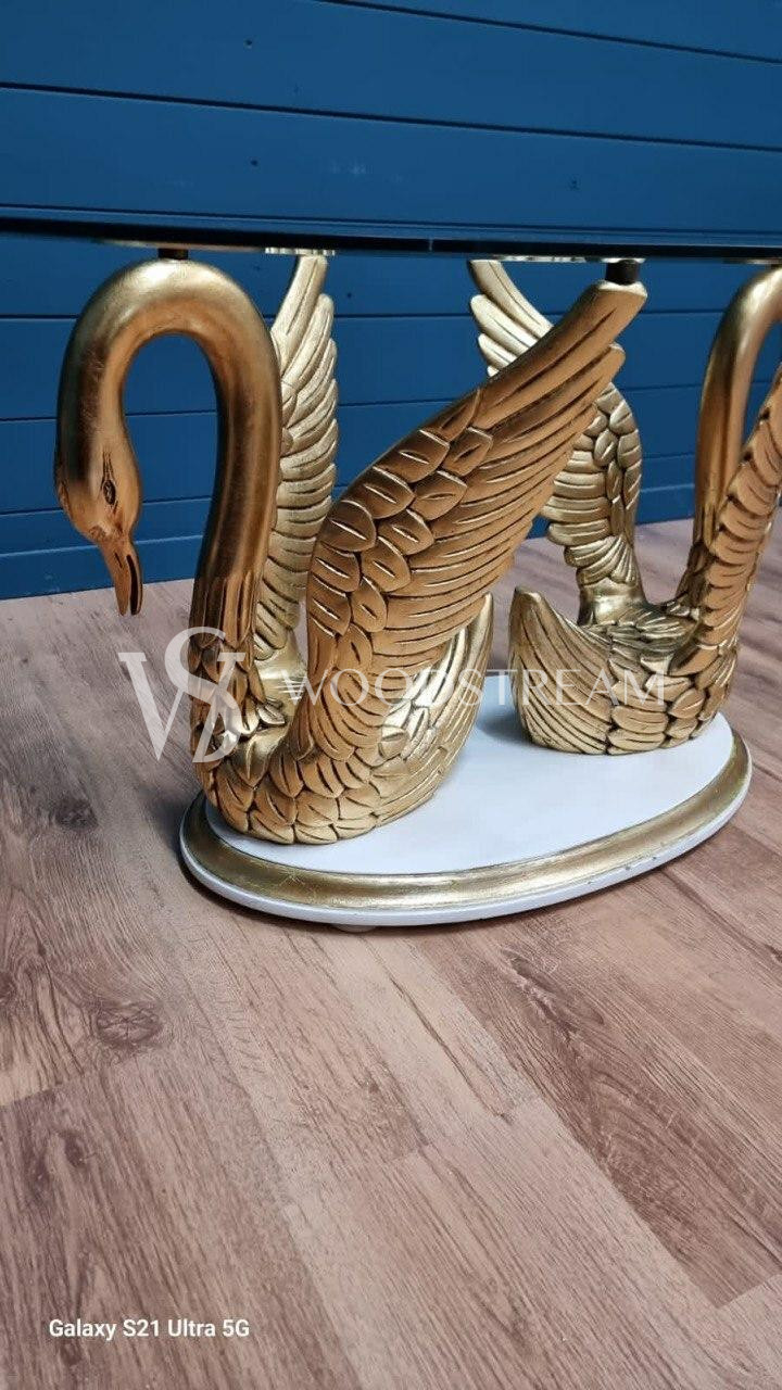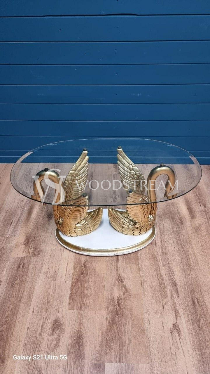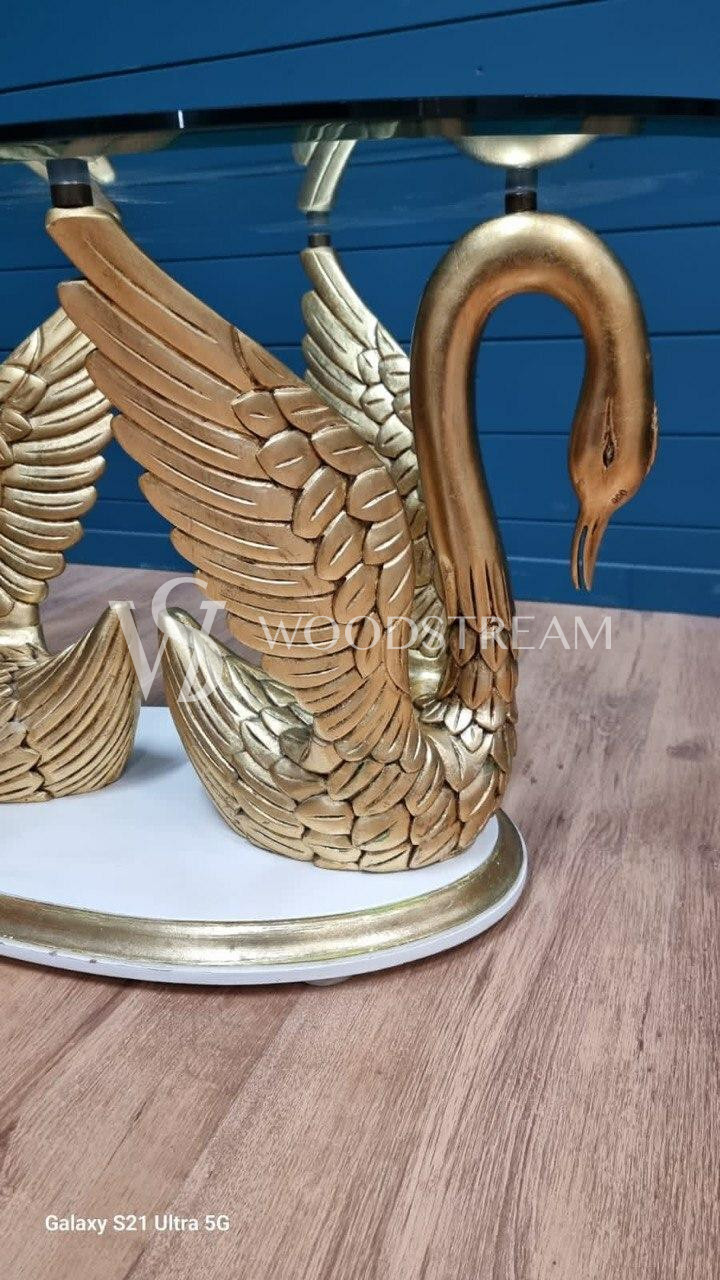 Стол с подстольем в форме лебедей и стеклянной столешницей / Арт-И20295