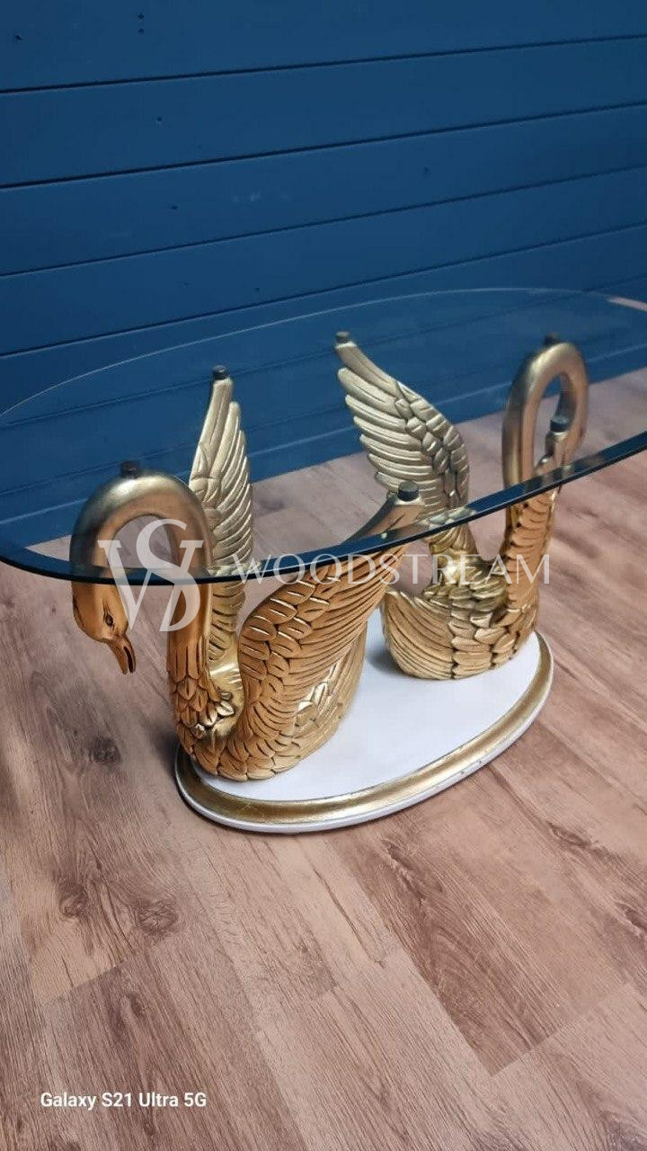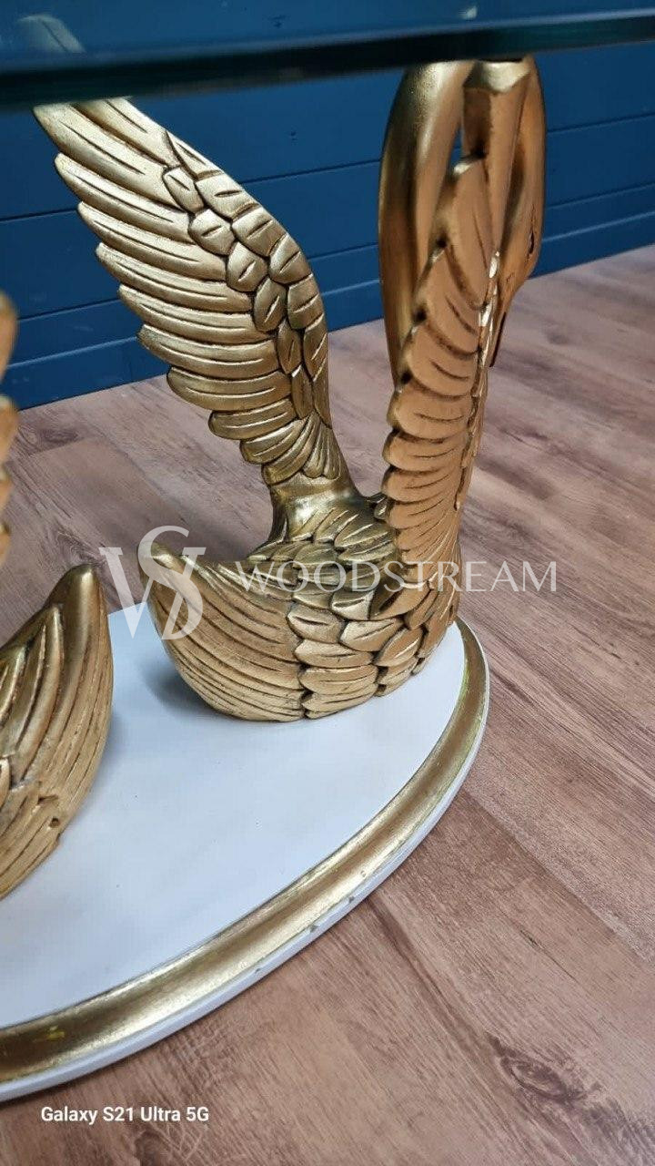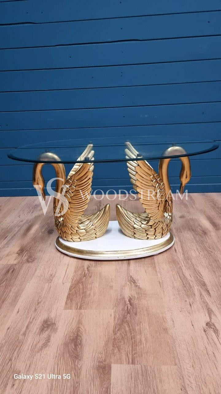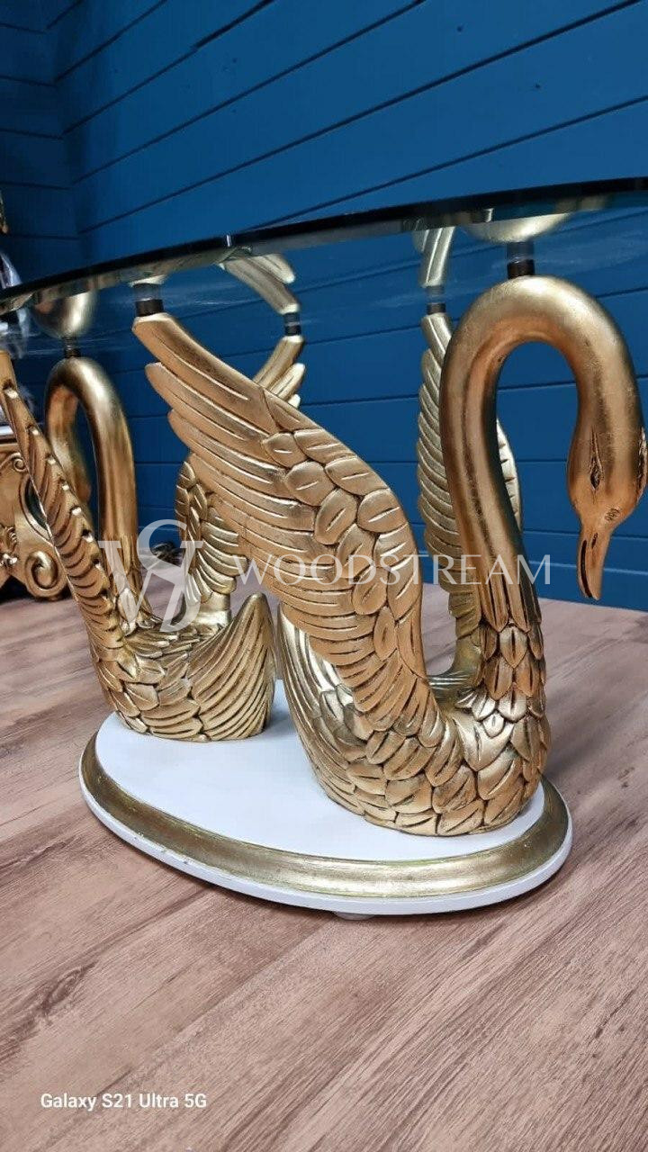 Стол с подстольем в форме лебедей и стеклянной столешницей / Арт-И20295