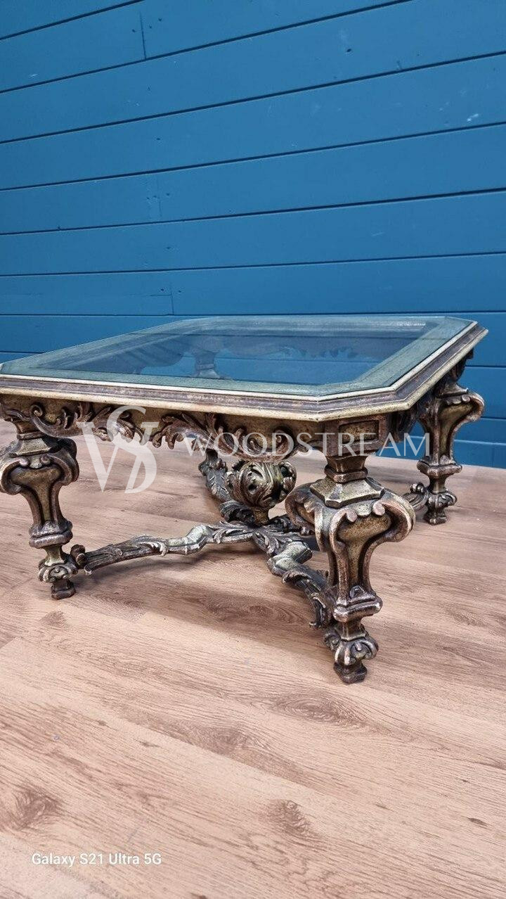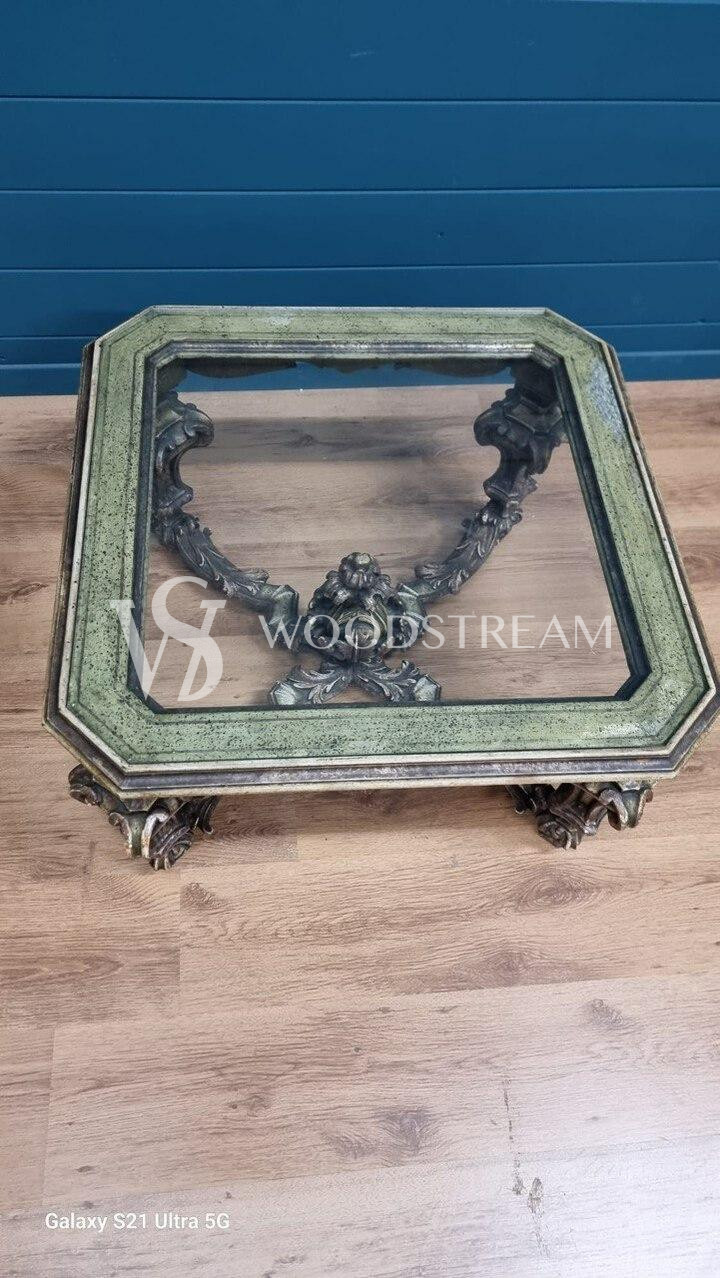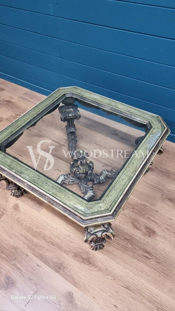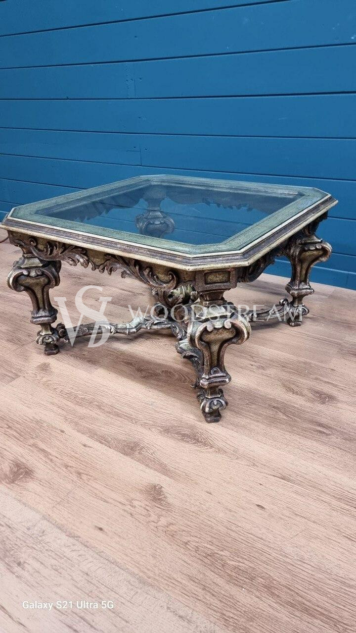 Стол журнальный в стиле венецианского барокко со стеклянной столешницей / Арт-И20345