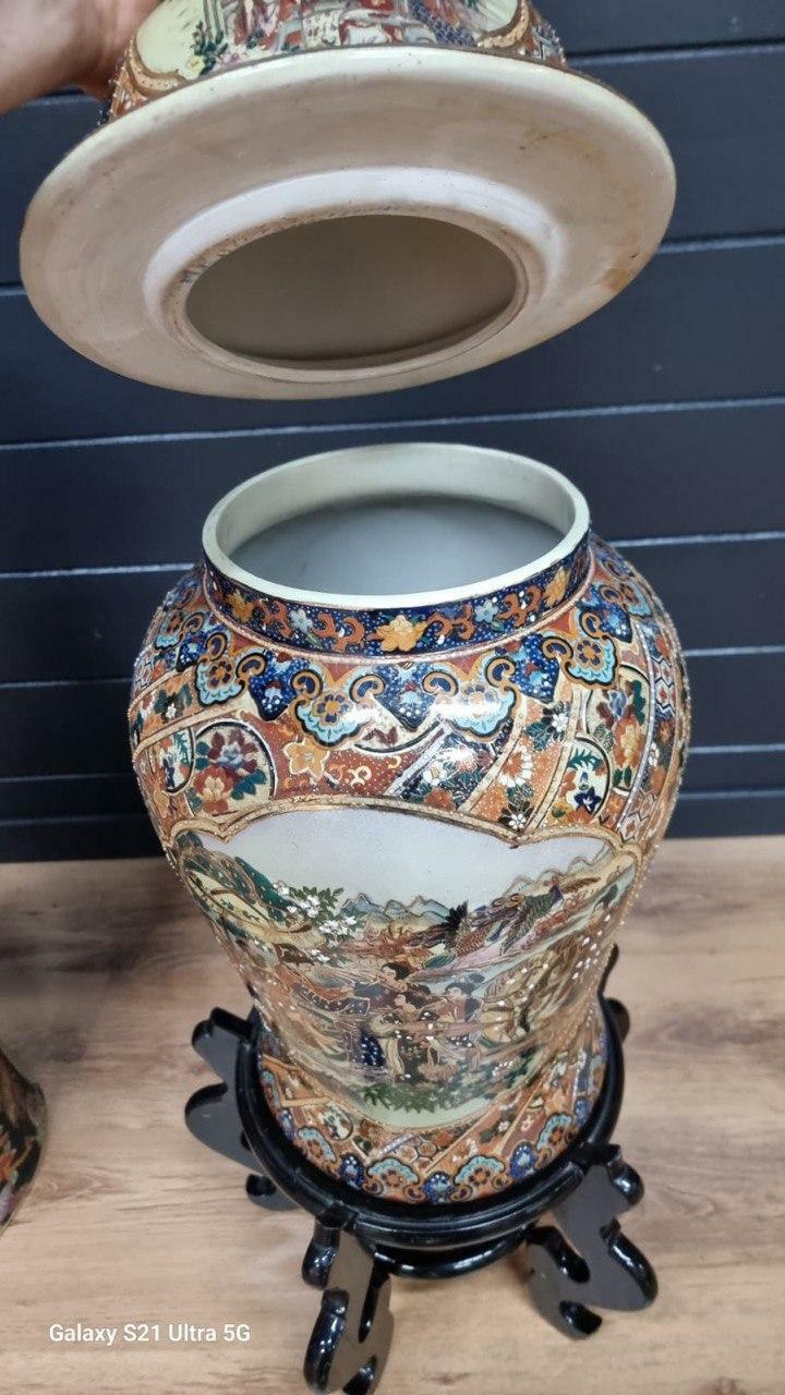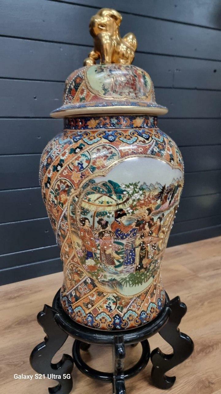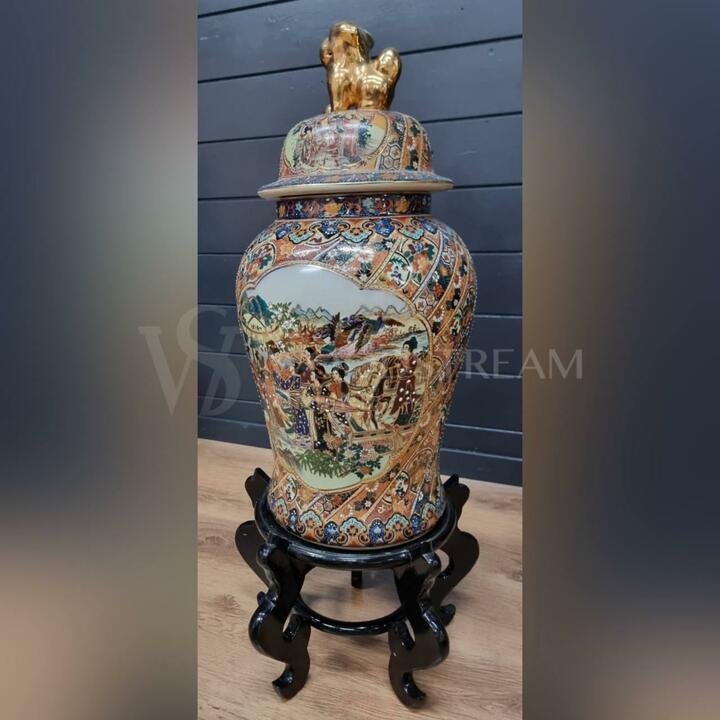 Ваза с крышкой в стиле шинуазри на подставке / Арт-И21436