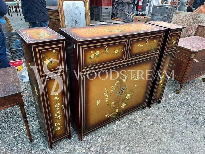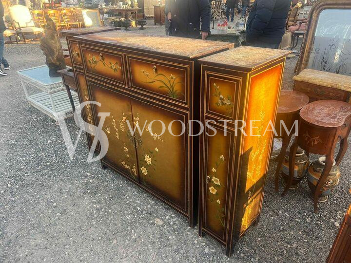Комплект: Комод/Тумба и Тумба узкая 2 штуки в стиле шинуазри / Арт-И21664