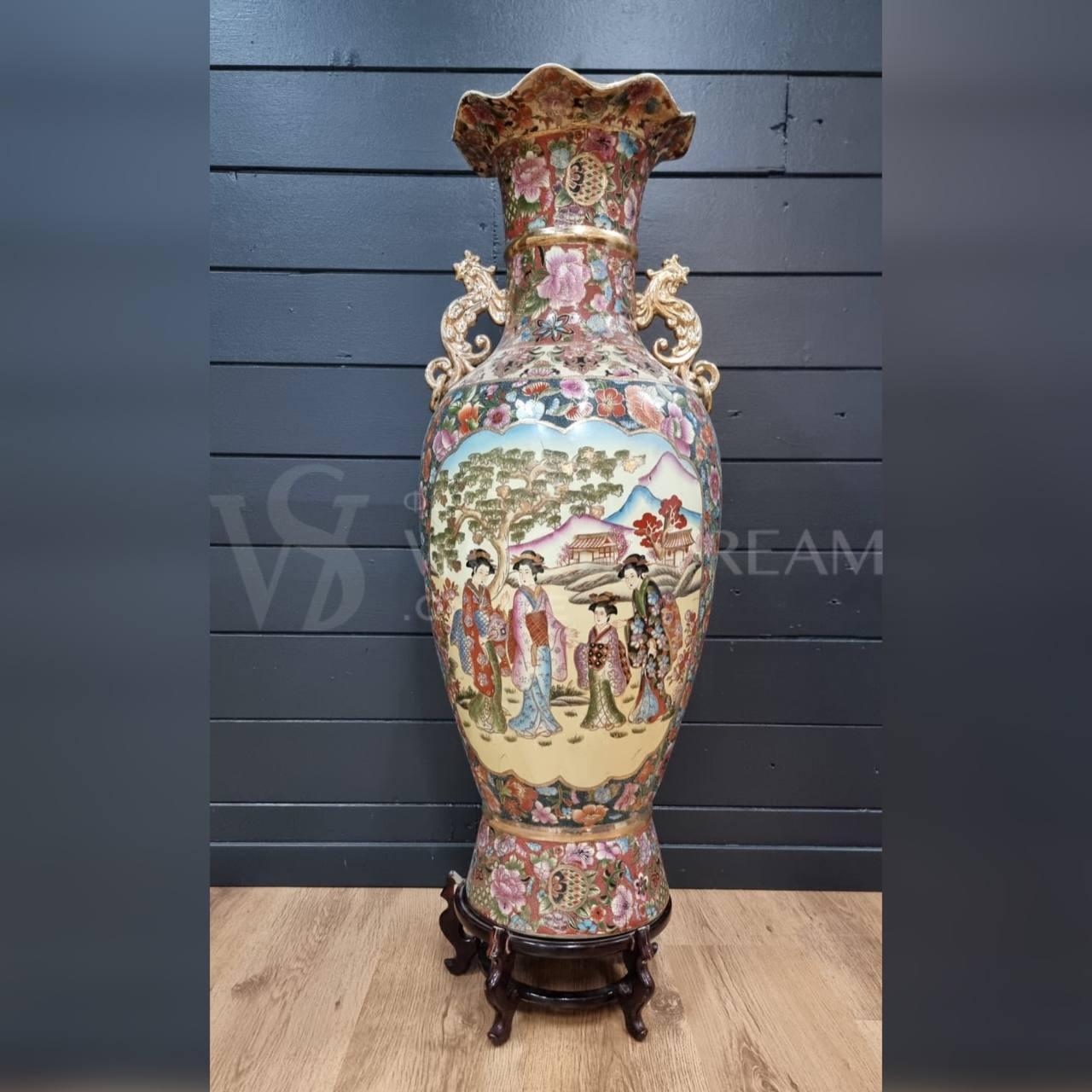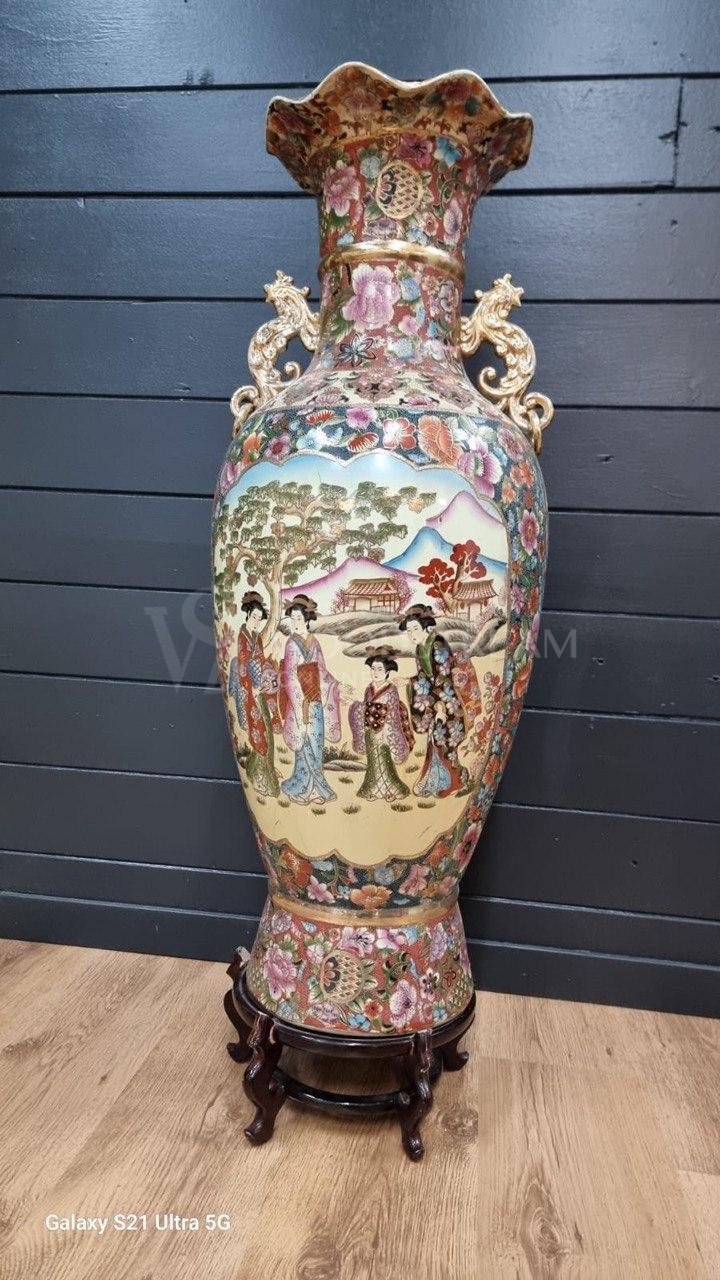 Ваза напольная в стиле шинуазри на подставке / Арт-И22072