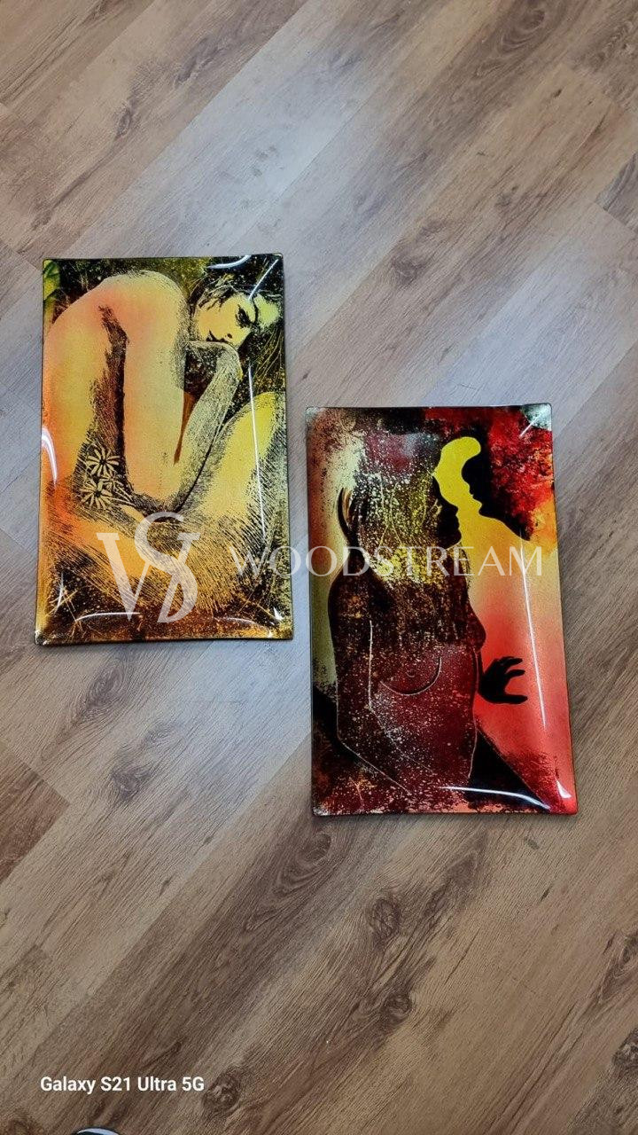 Тарелка/Поднос/Панно/Картина/Роспись по стеклу 2 штуки / Арт-И22219