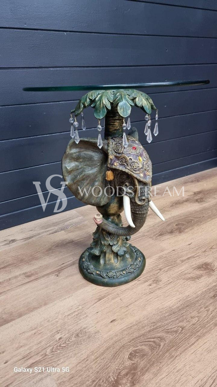 Стол/Подставка со стеклянной столешницей и изножьем в форме слона / Арт-И22247