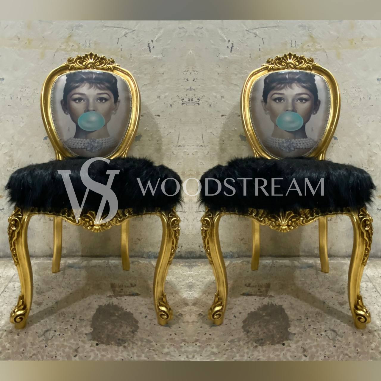 Стул в стиле барокко 2 штуки/принт Одри Хепбёрн / Арт-И22692