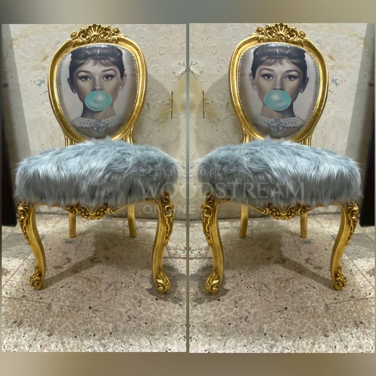 Стул в стиле барокко 2 штуки/принт Одри Хепбёрн / Арт-И22693