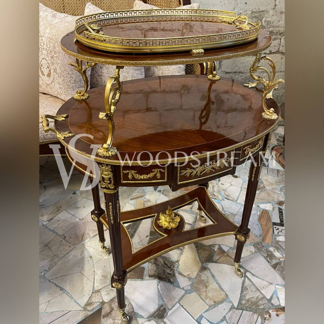 Стол сервировочный с подносом в стиле Людовика XVI / Арт-И22760