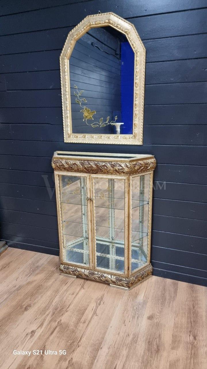Комплект: Тумба/Витрина миниатюрная и Зеркало винтажное / Арт-И23122