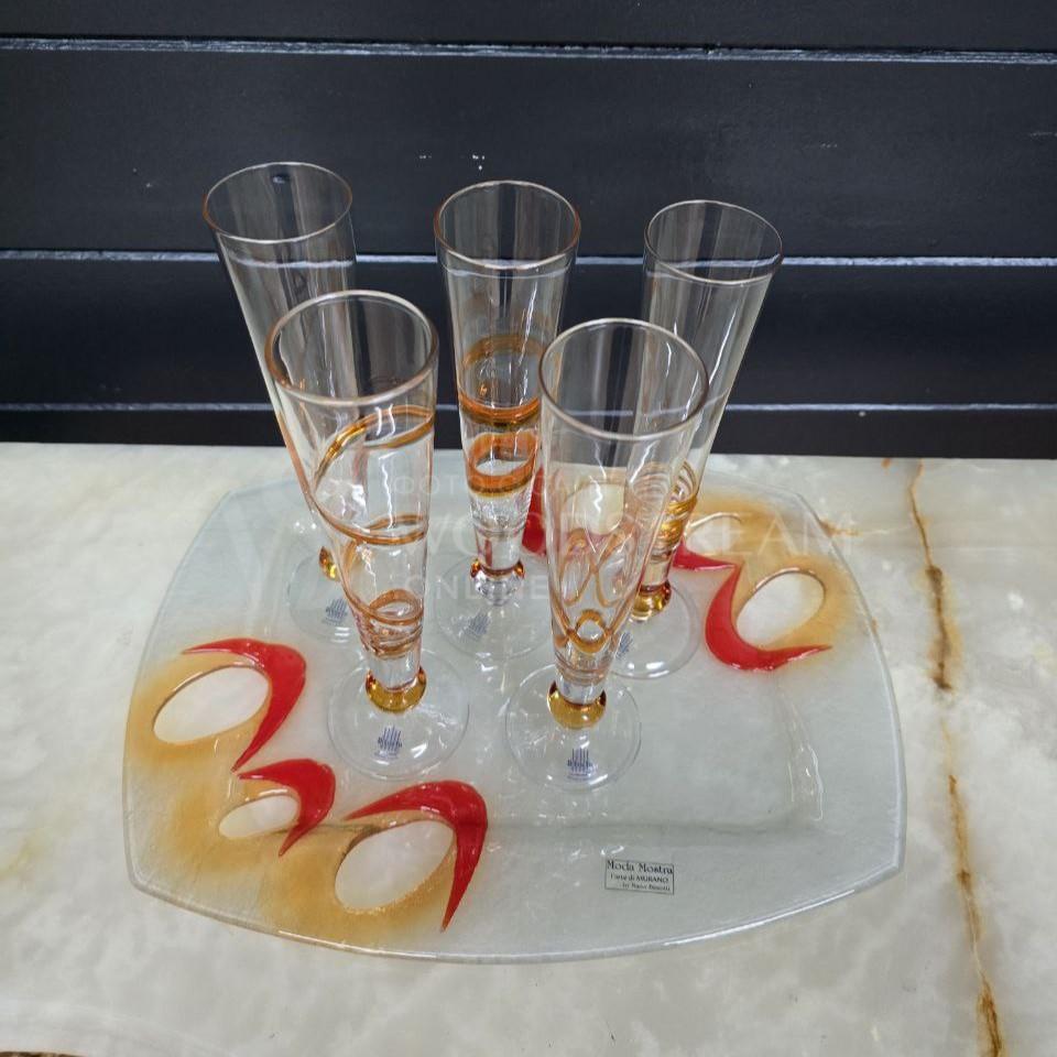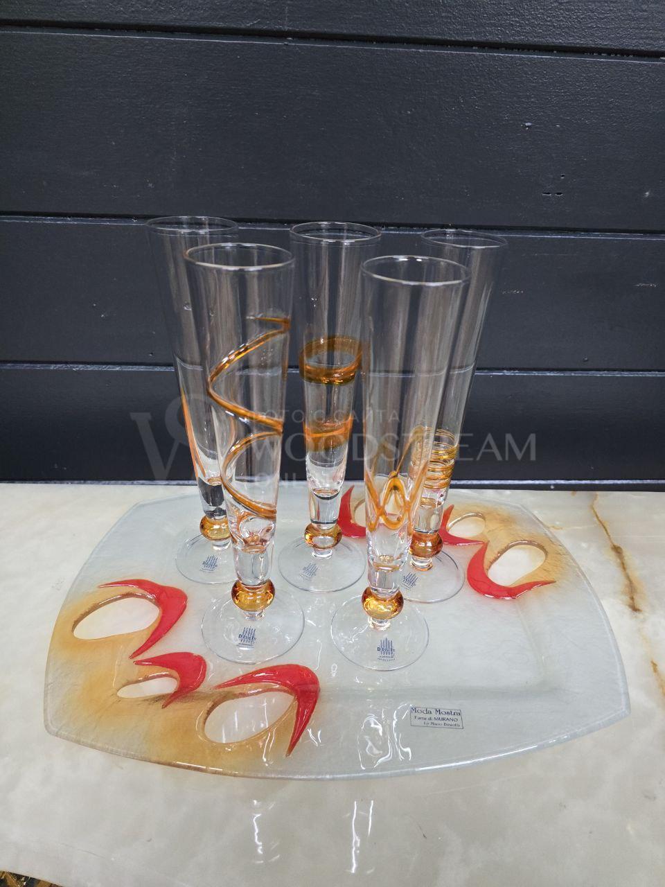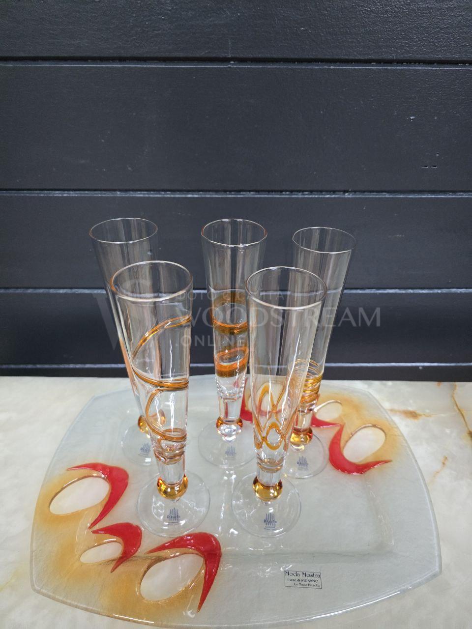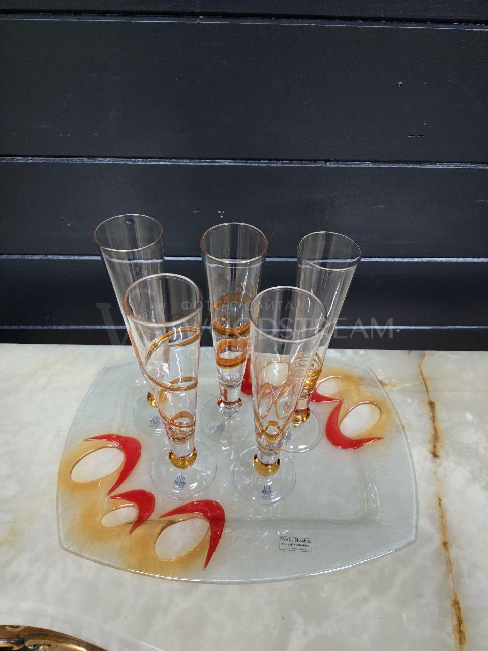 Набор: Бокал/Фужер 5 штук на подносе Мурано / Арт-И23356