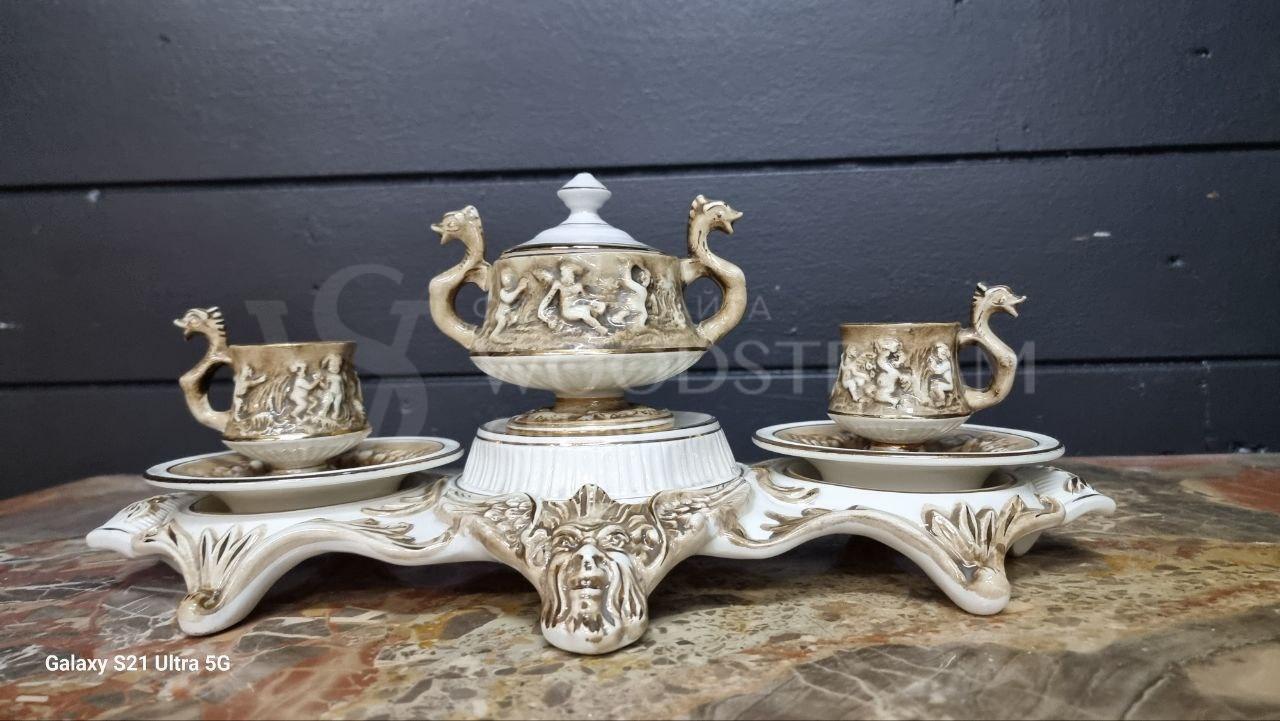 Сервиз чайный/кофейный на 2 персоны на подносе Каподимонте / Арт-И23549