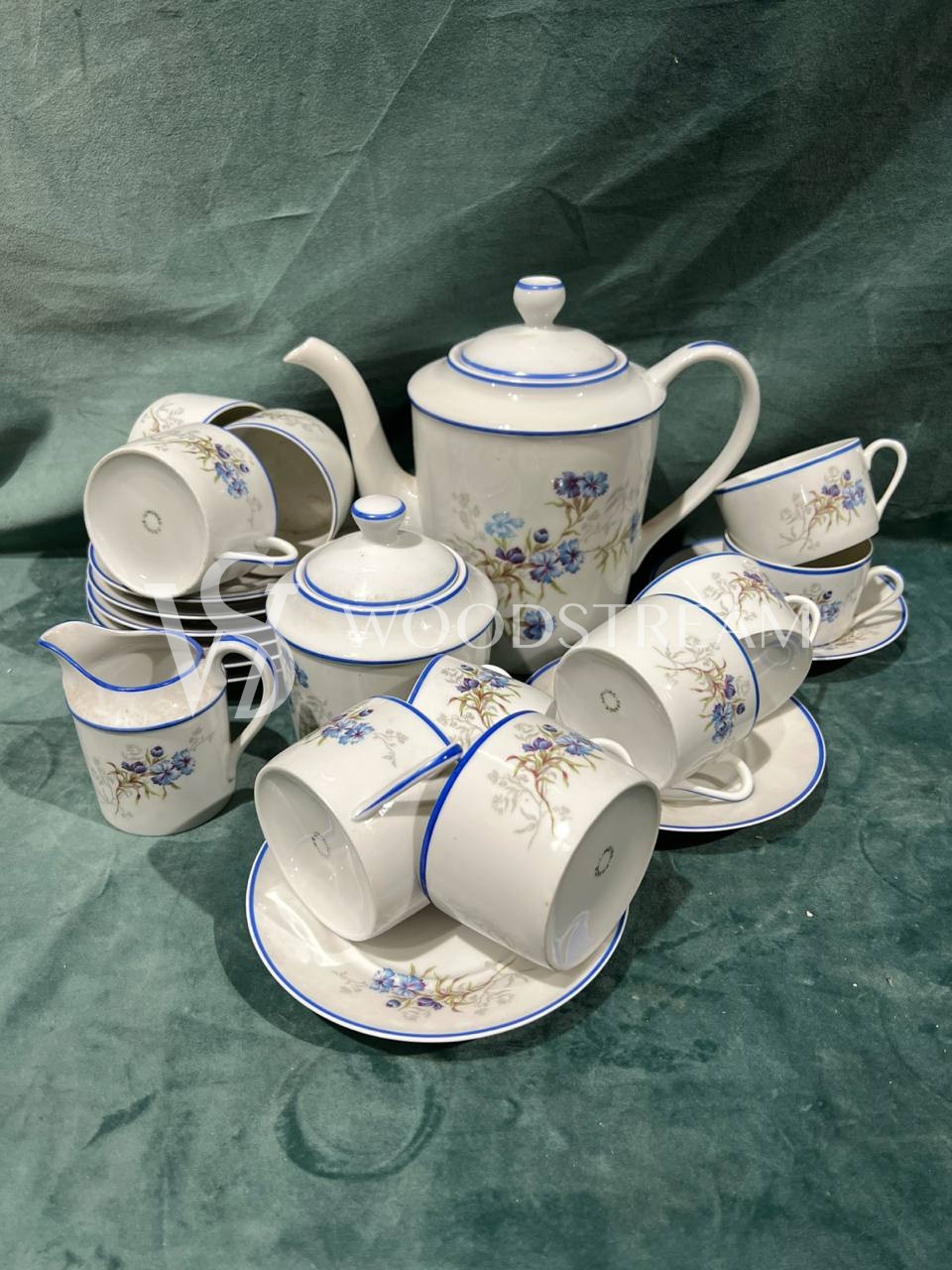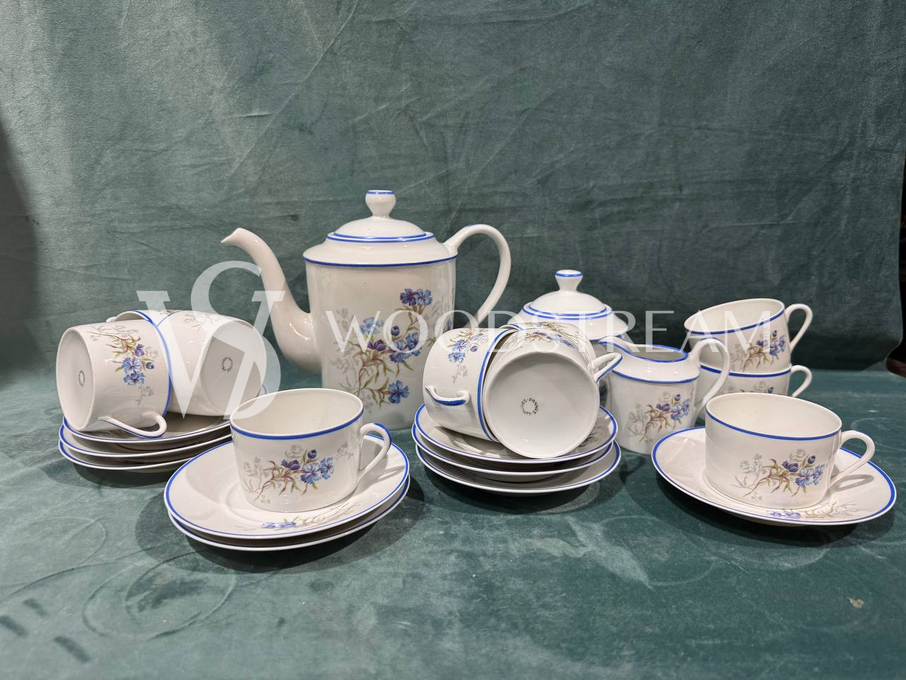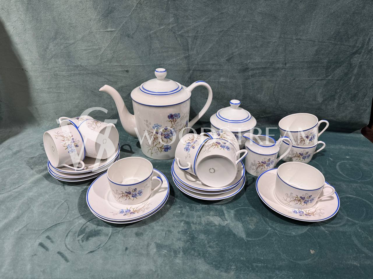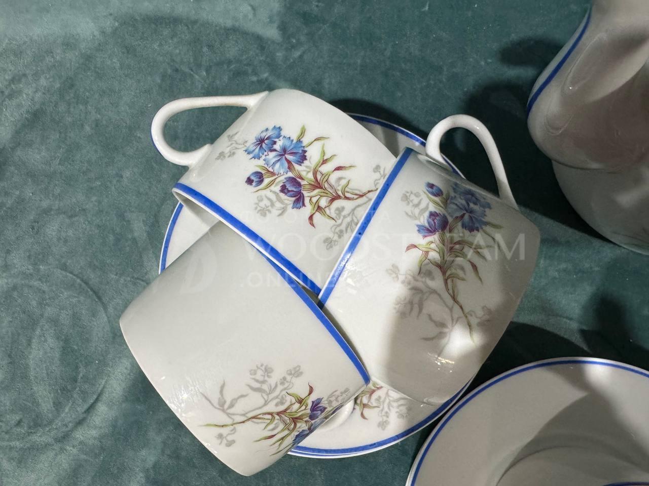 Сервиз 22 предмета. Чайник с крышкой 1 шт, сливочник 1 шт, сахарница с крышкой 1 шт ,9 блюдец, чашек 10 шт