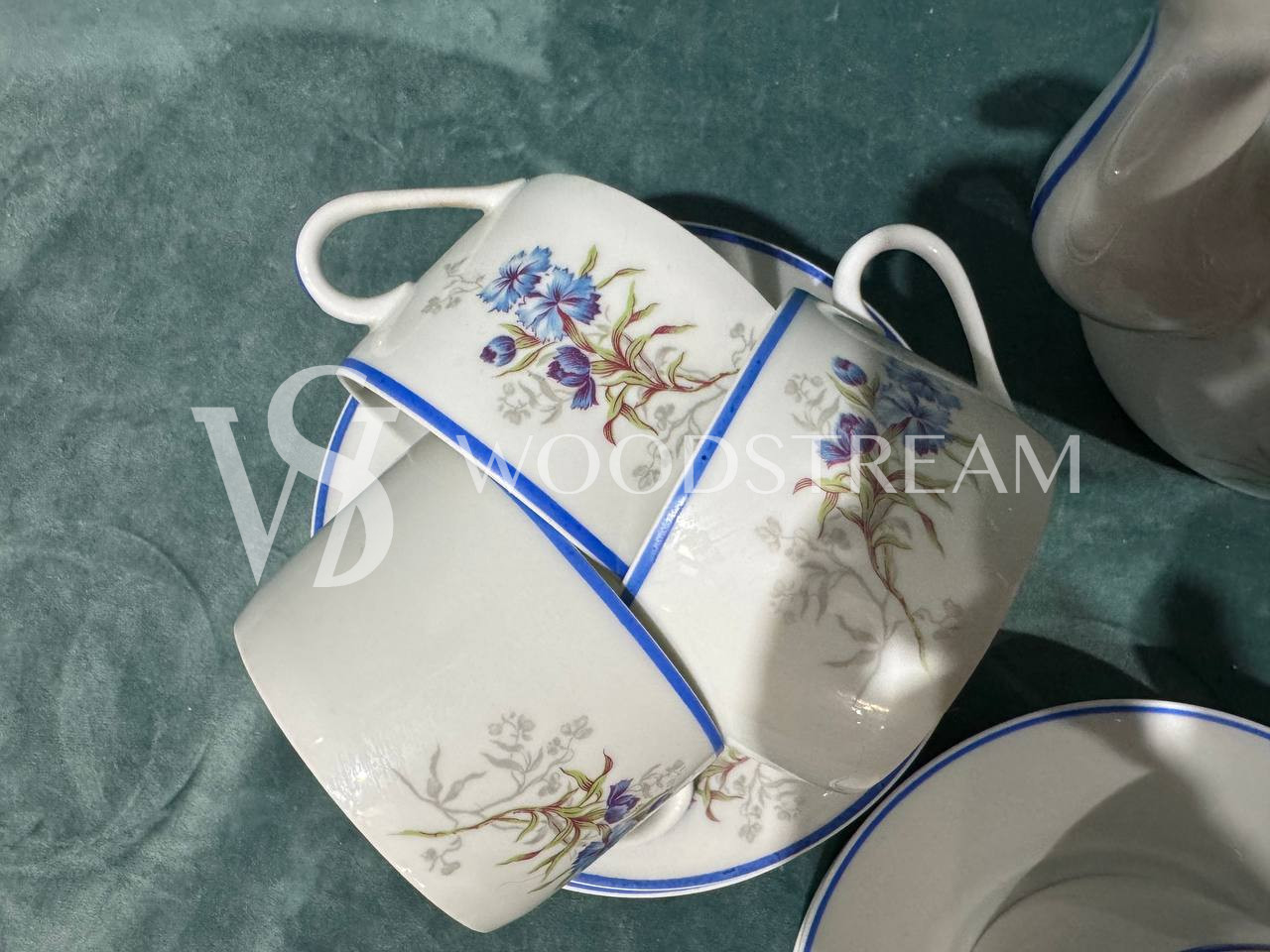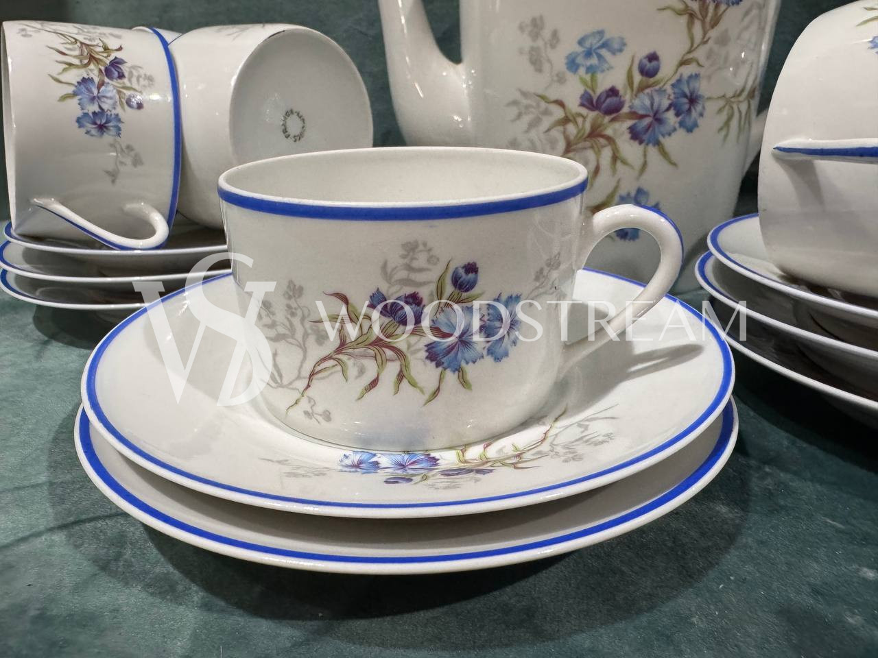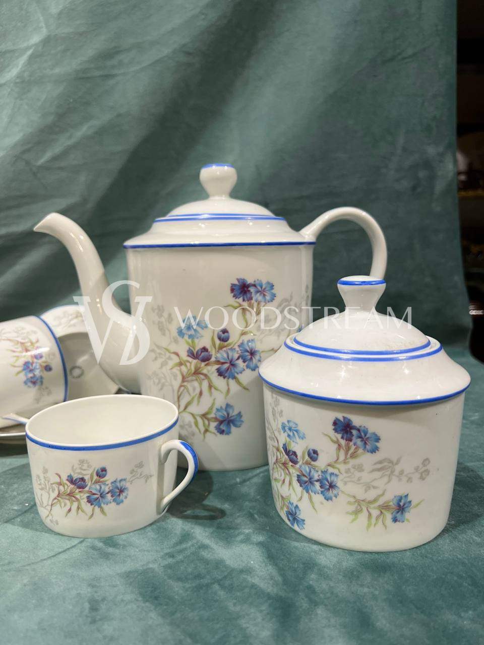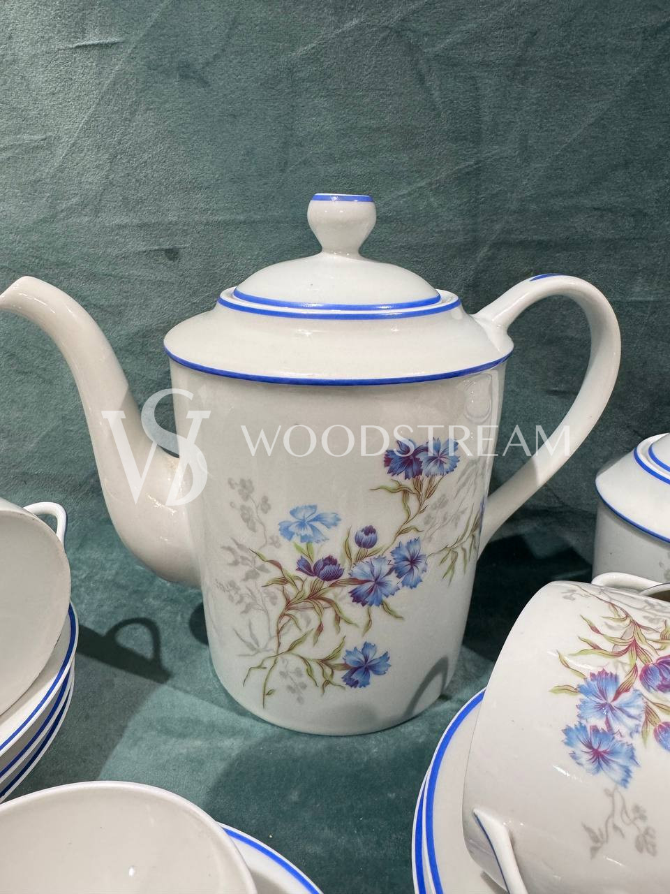 Сервиз 22 предмета. Чайник с крышкой 1 шт, сливочник 1 шт, сахарница с крышкой 1 шт ,9 блюдец, чашек 10 шт