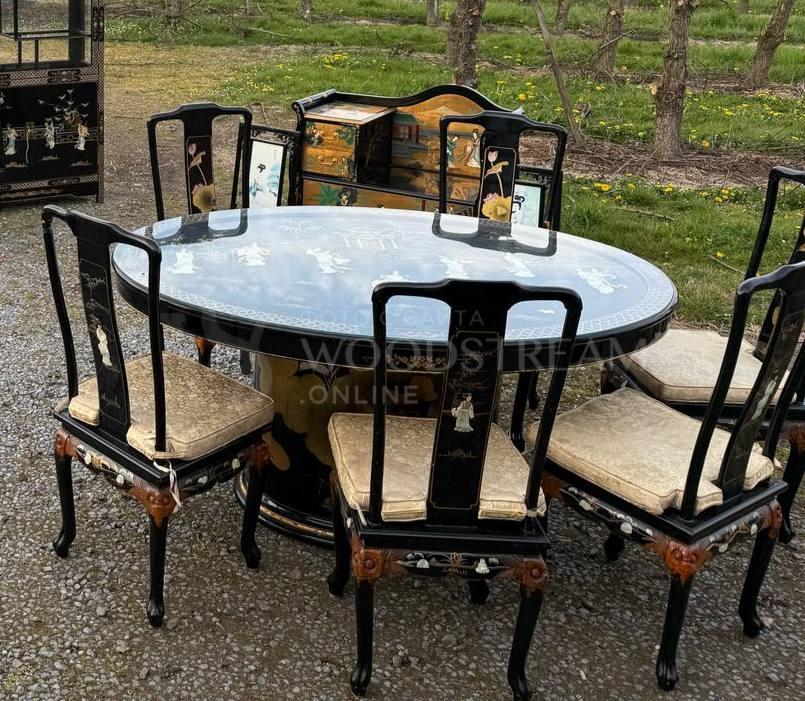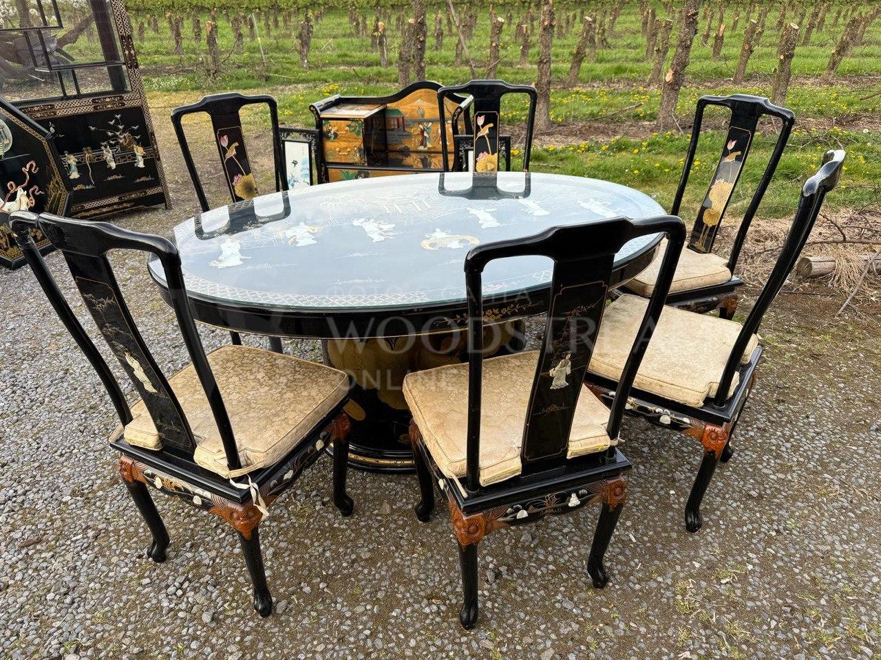 Комплект обеденный в стиле шинуазри: Стол и Стул 6 штук / Арт-И24182