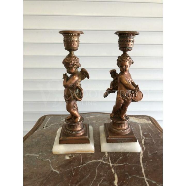 Пара винтажных подсвечников с ангелочками