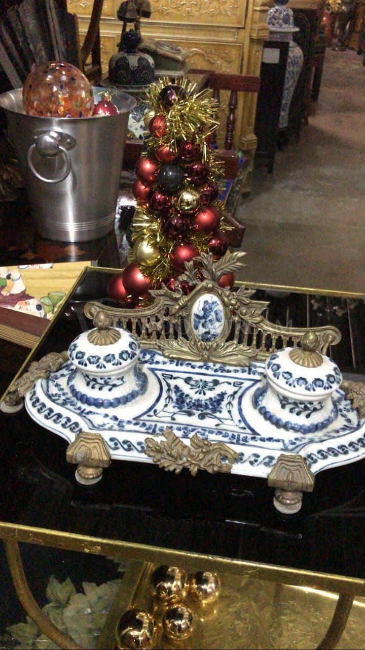 Винтажная чернильница из фарфора и бронзы
